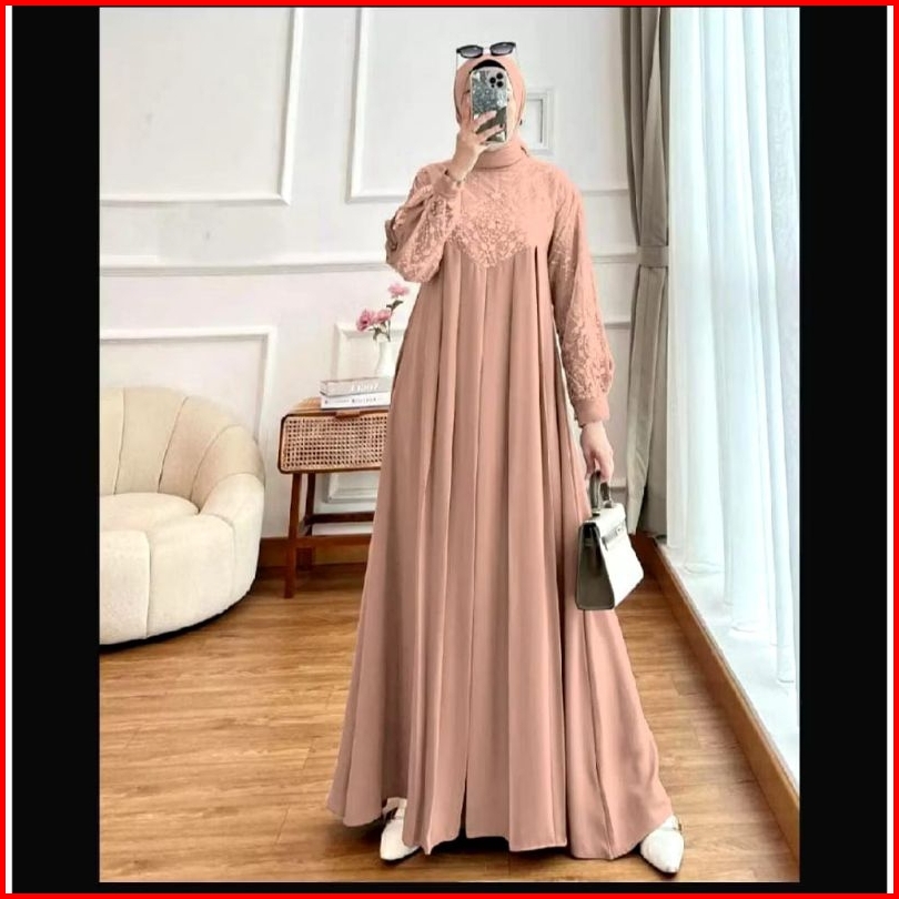 Aghnia Maxi Dress Gamis Burkat Pesta Kondangan Mewah Elegan Gamis Lebaran 2025 Model Terbaru