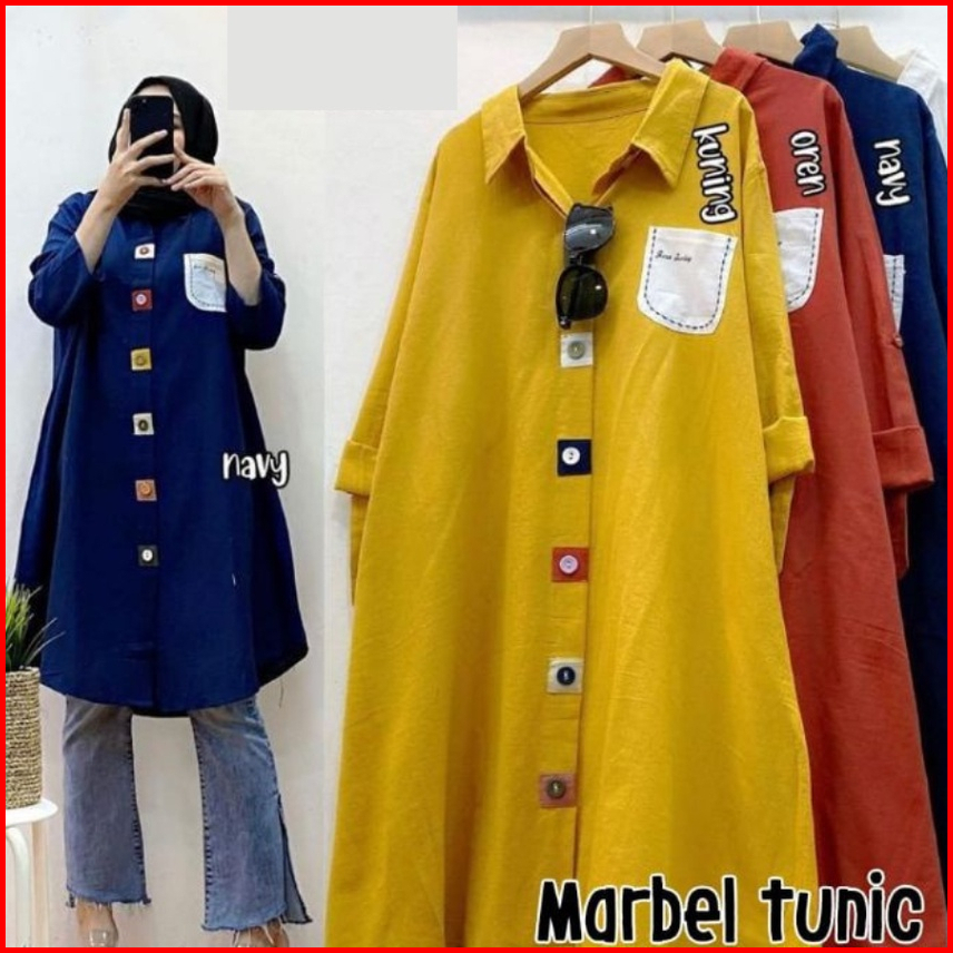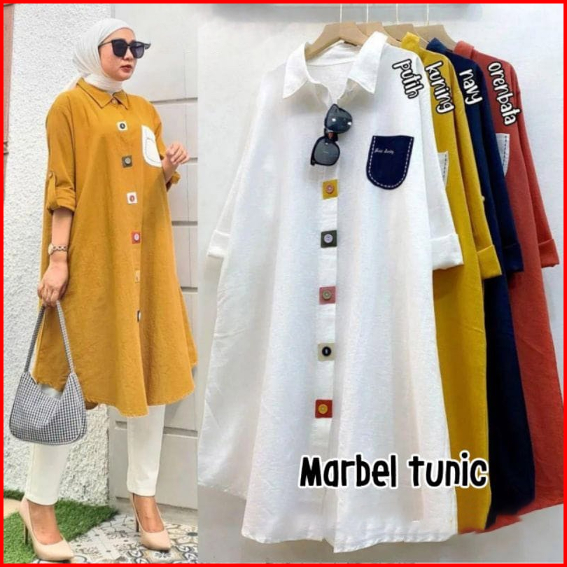 Marbel Tunik Atasan Linen Rami Premium Full Button Fit To Xl Baju Muslim Wanita Kekinian Termurah