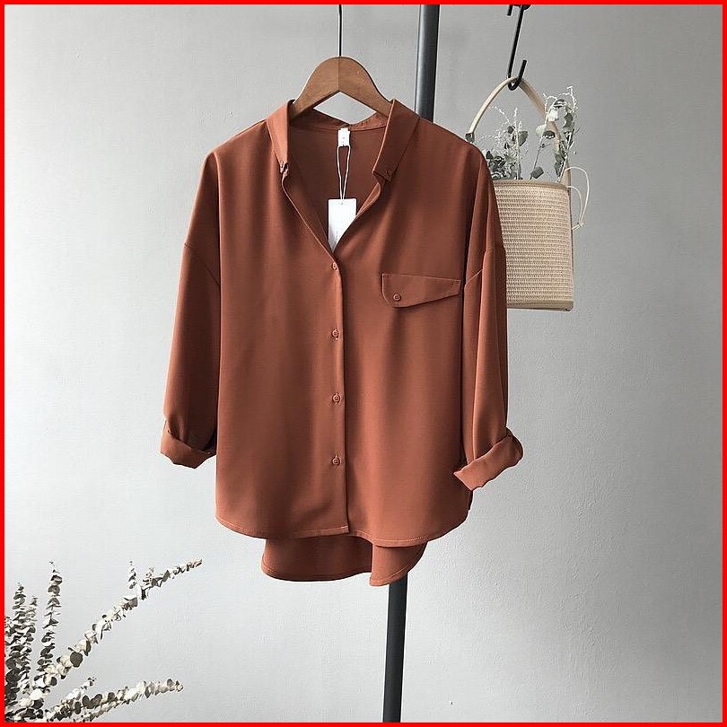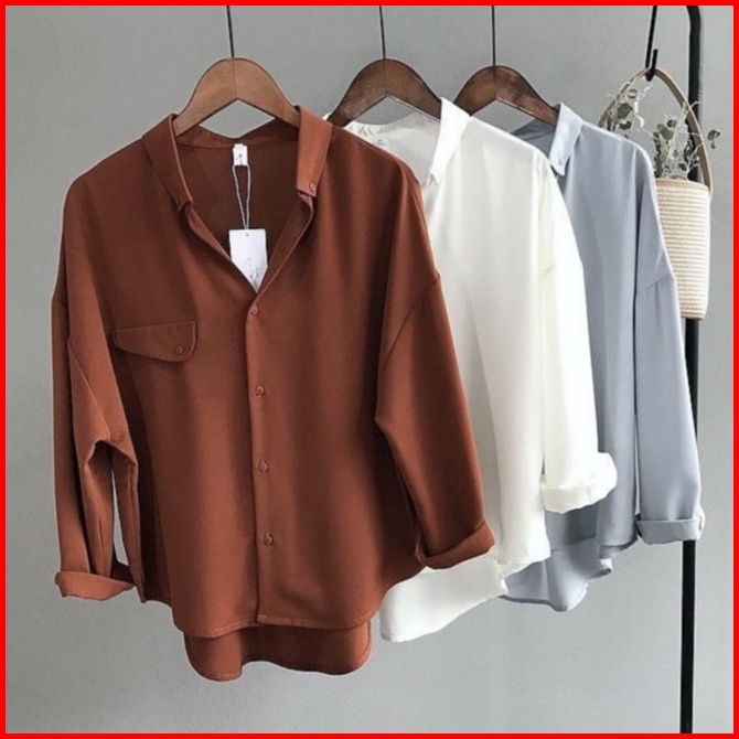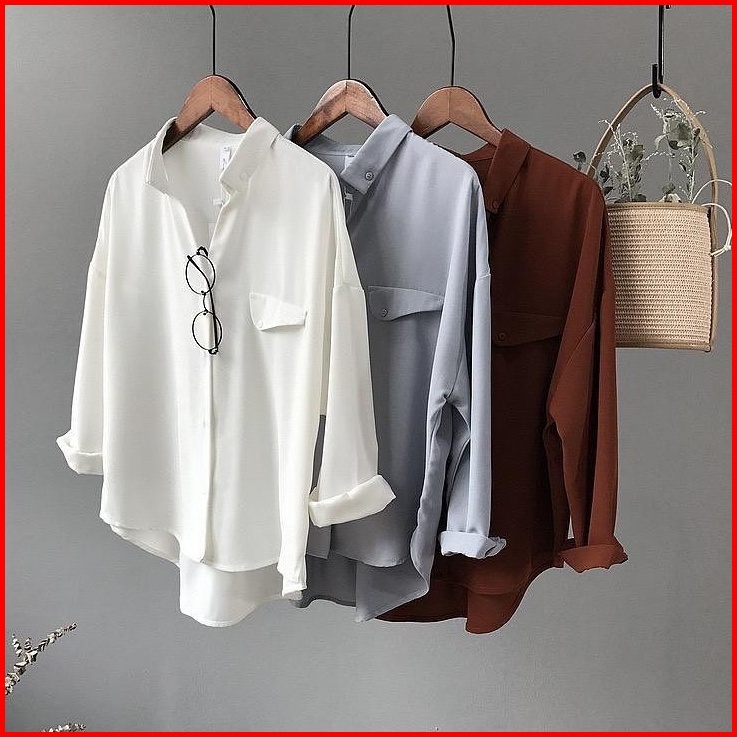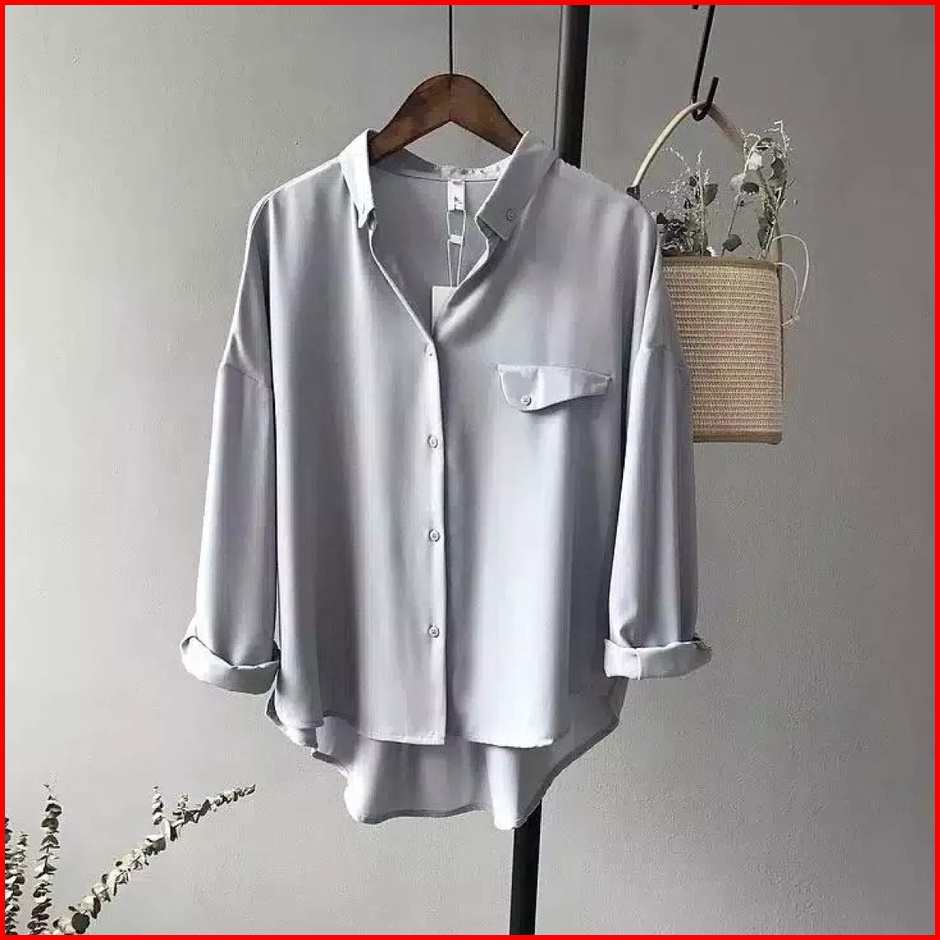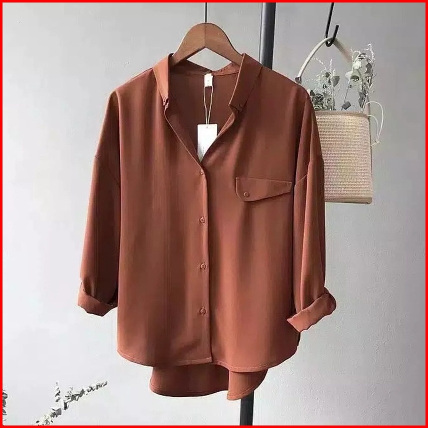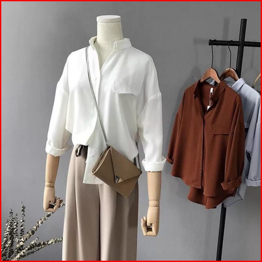 Manda Top Shirt Kemeja Basic Korean Premium Polos Fit L Fashion Baju Atasan Remaja Wanita Kekinian Termurah