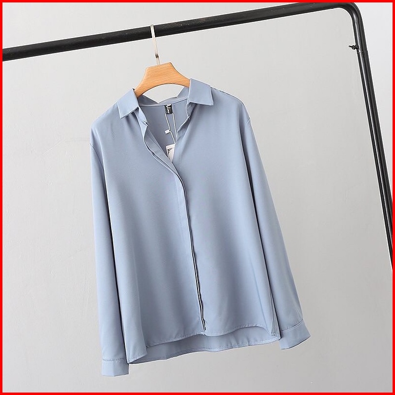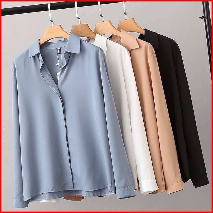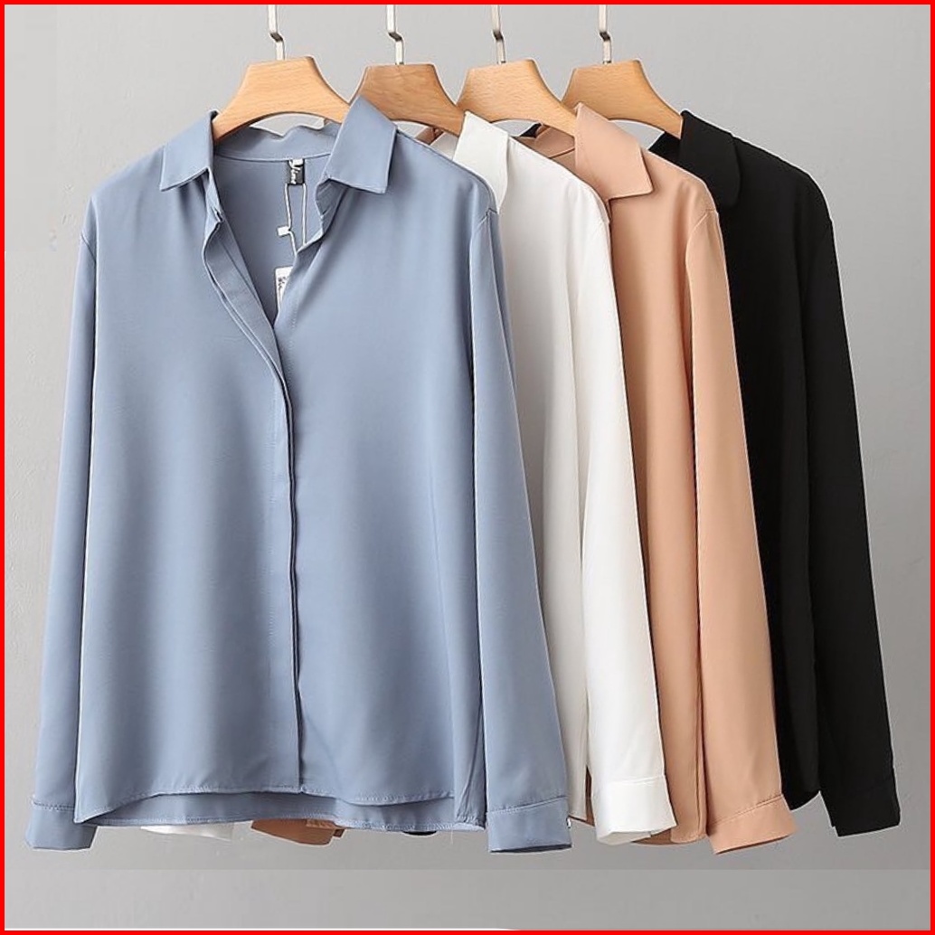 Amor Top Long Shirt Kemeja Polos Basic Korean Premium Fit L Fashion Baju Atasan Blouse Muslim Kerja Casual Wanita Termur