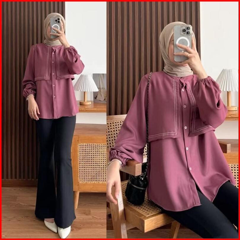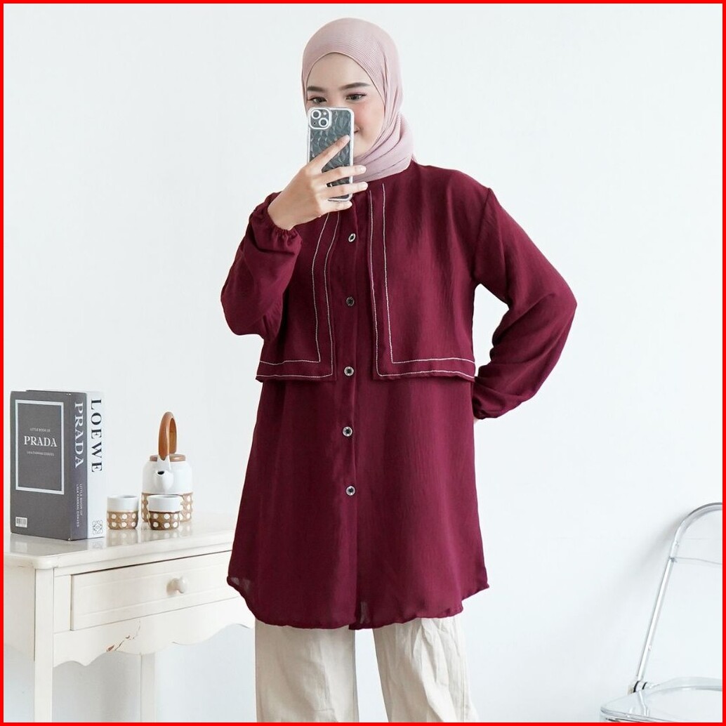 - Triana Blouse Atasan Kemeja Oversize Modern Kekinian Wanita Muslim Matt Cringkle Premium Ootd Kantoran L Casual Daily