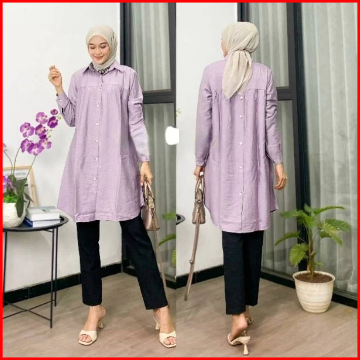 Zulfa Tunik Polo Linen Ld 110cm Dan Ld 120cm Variasi Kancing Belakang