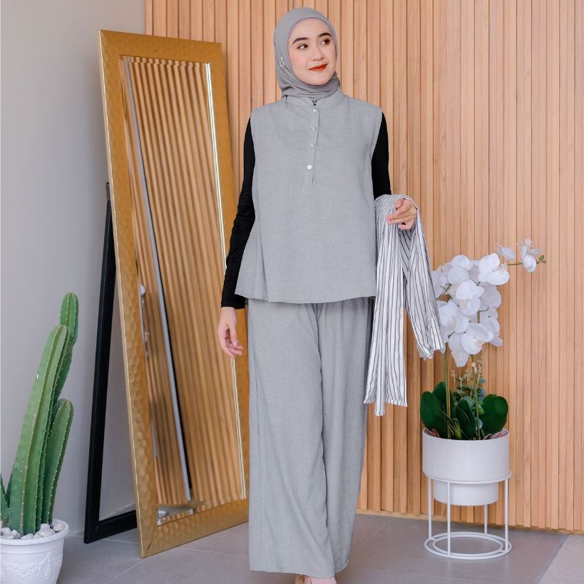 ( RAMADHAN SALE ) Ventedaily - Afrina One Set Wanita Setelan Ootd Atasan Inner Outer Celana Kulot Busui