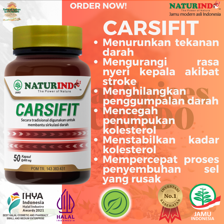 Naturindo Carsifit Obat Pelancar Memperlancar Peredaran Darah Herbal Angkut Stroke Struk Lumpuh Separuh 100% Halal Bpom