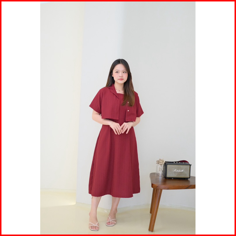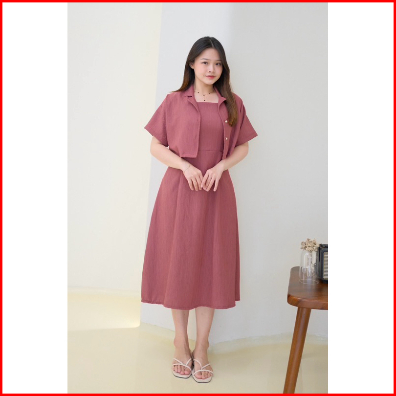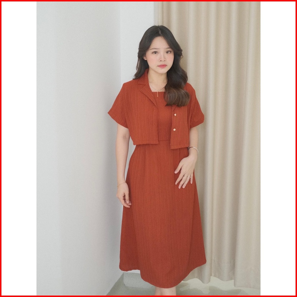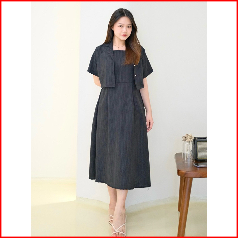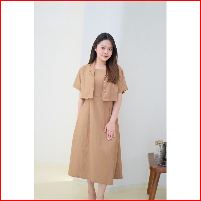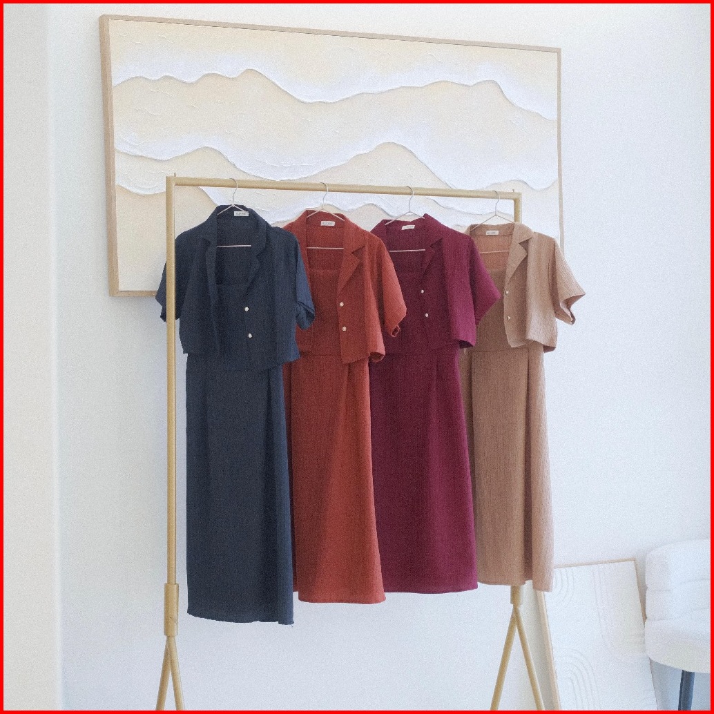 Hari Set 2in1 Midi Dress Blazer Blazer Crop Kancing Dress Midi Polos