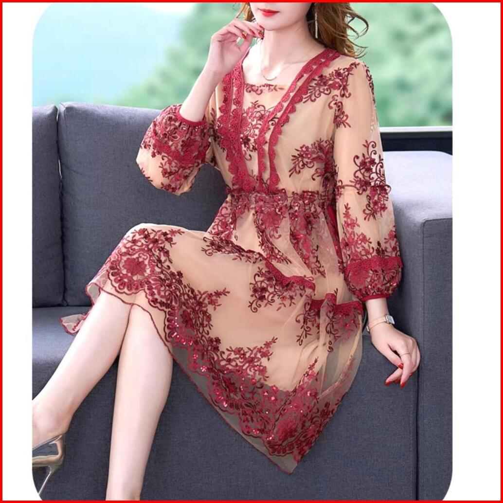 Tm 65280 Dress Cny Aileen Sequin Embroidered Mesh Dress
