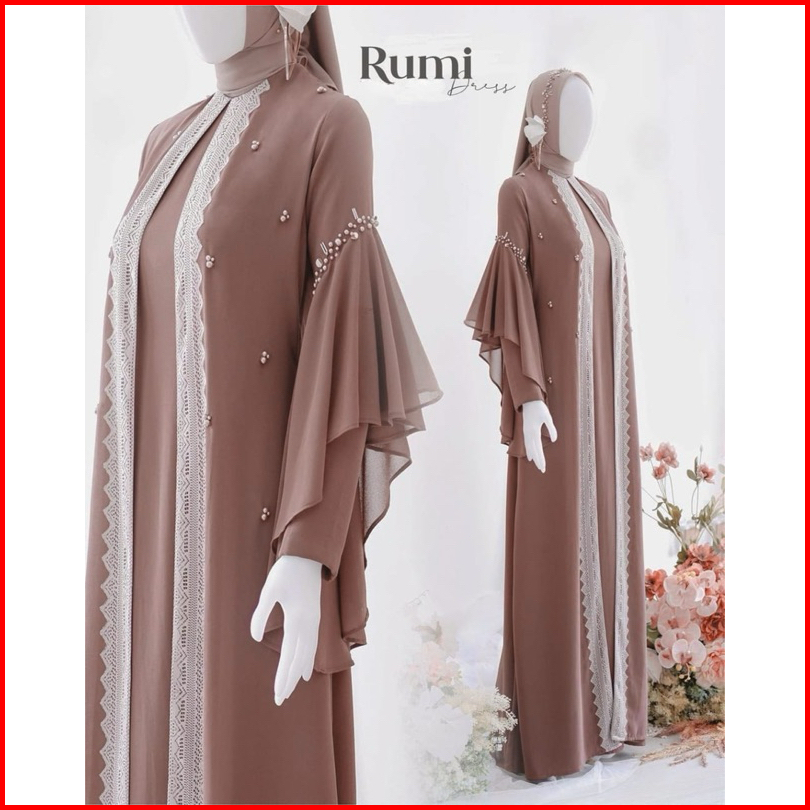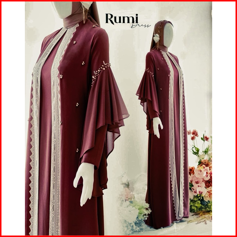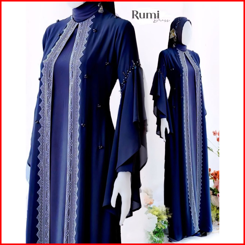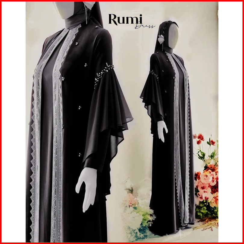 Gamis Pesta Hitam Mewa Elegan Rumi Dress Ceruty Wanita Muslimah Kekinian