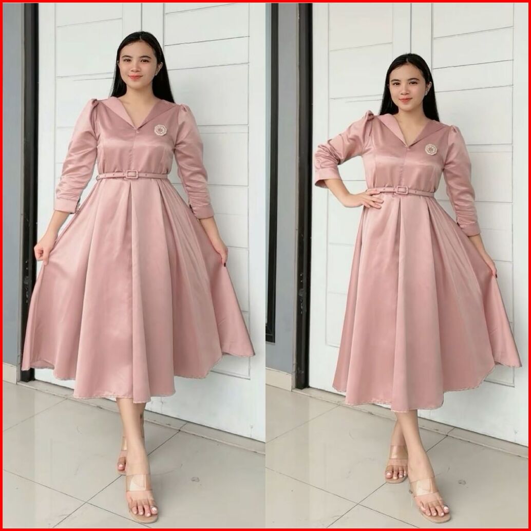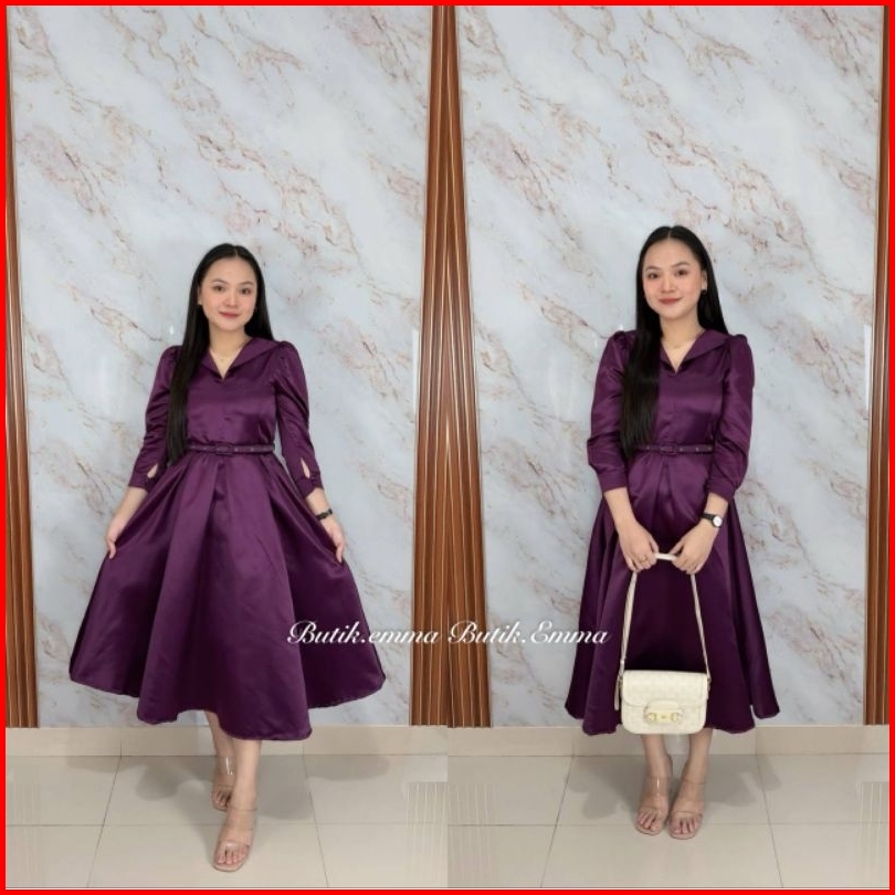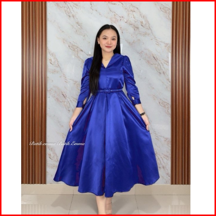 Emma.butik E00055 Dress Formal Satin Mewah Hijab Dress Pesta Gereja