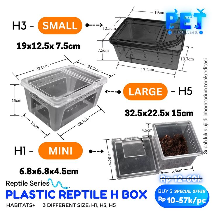 Kandang Reptil Reptile Tarantula Kodok Gecko Ular Kotak Box Reptil Bahan Plastik Transparan Dilengkapi Ventilasi