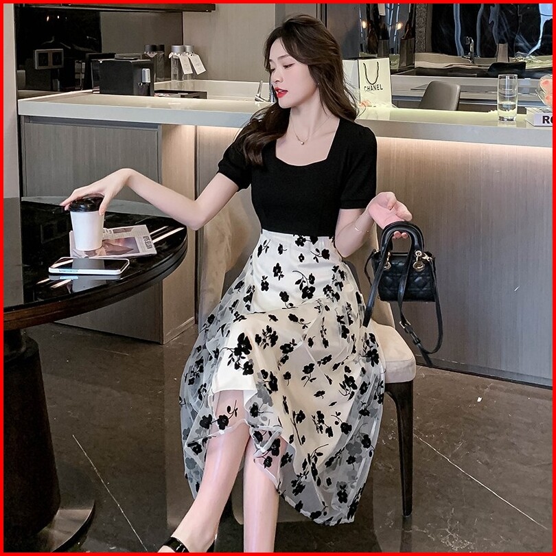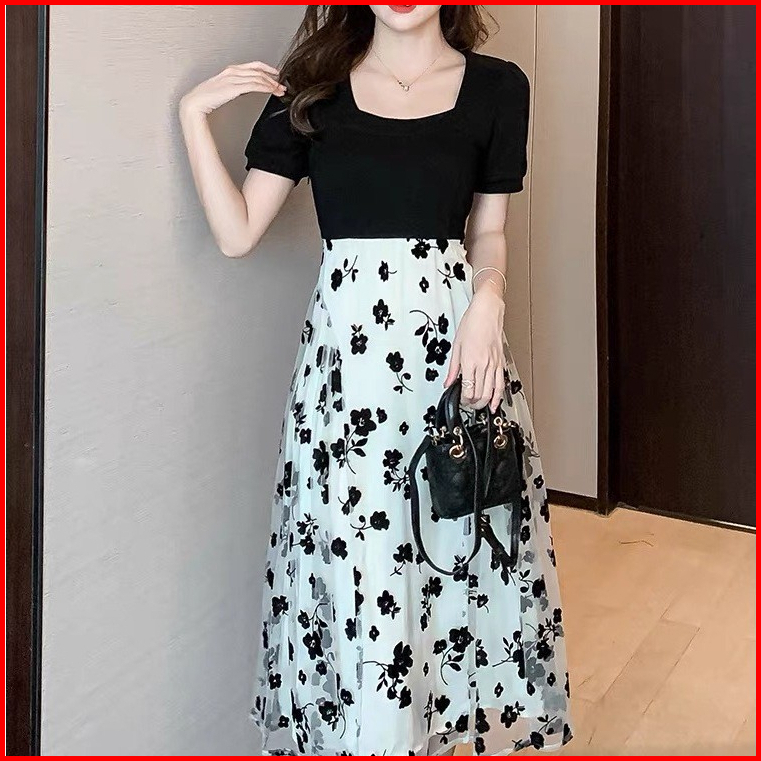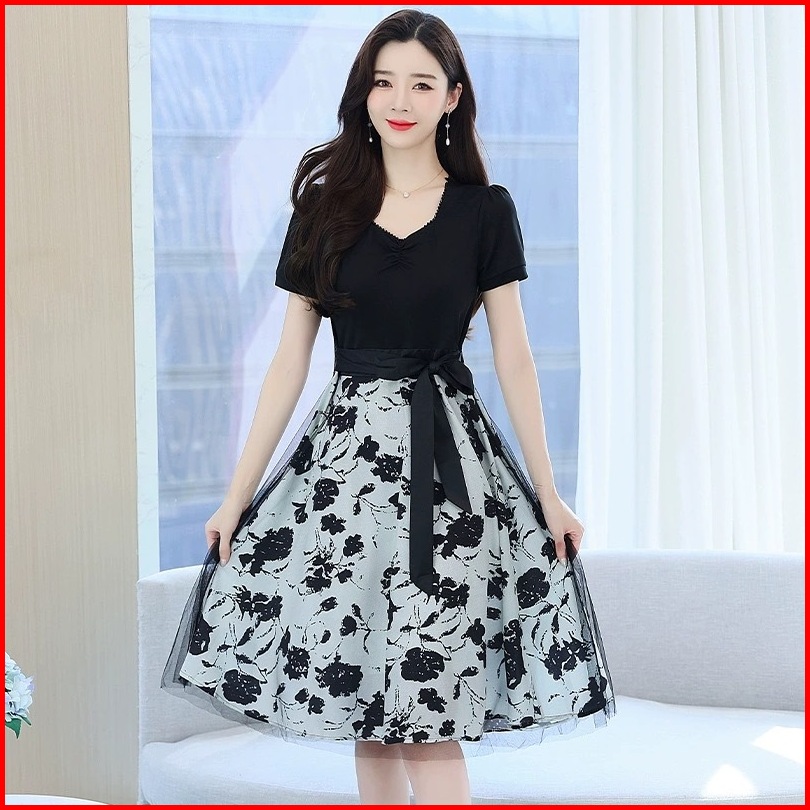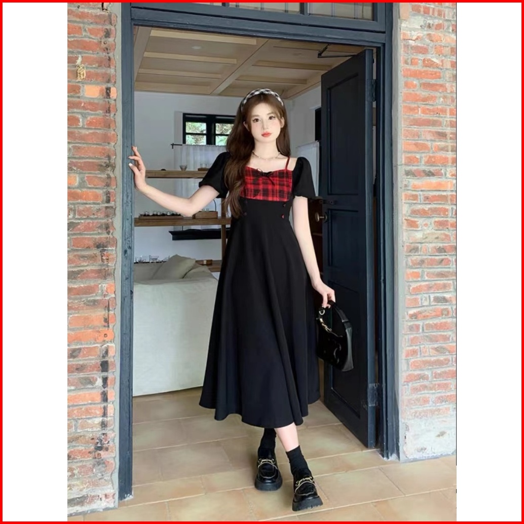 Hitam Elegant Korean Dress Prom Cantik Evening Lengan Pendek Pantai Wanita Midi Dress Princess Kondangan Simple Elegan P