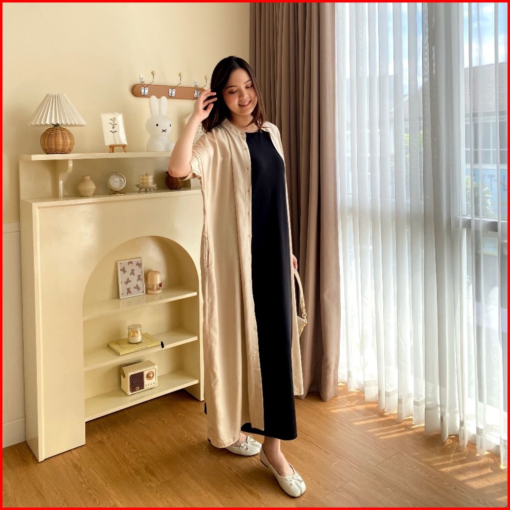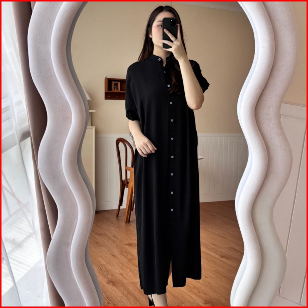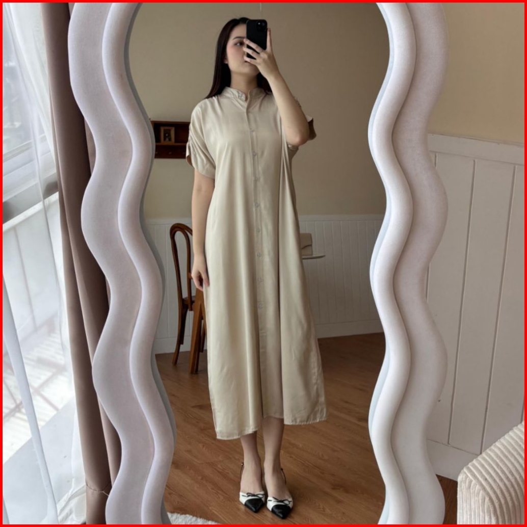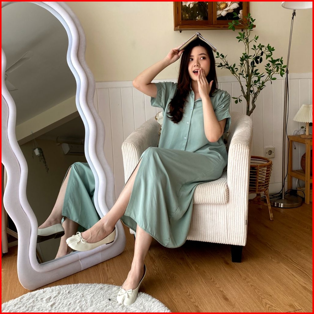 Prqueen Fashion Lea Midi Dress Long Shirt Casual Korean Style Midi Dress Lengan Pendek Midi Dress Rayon