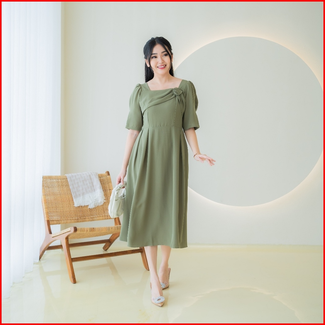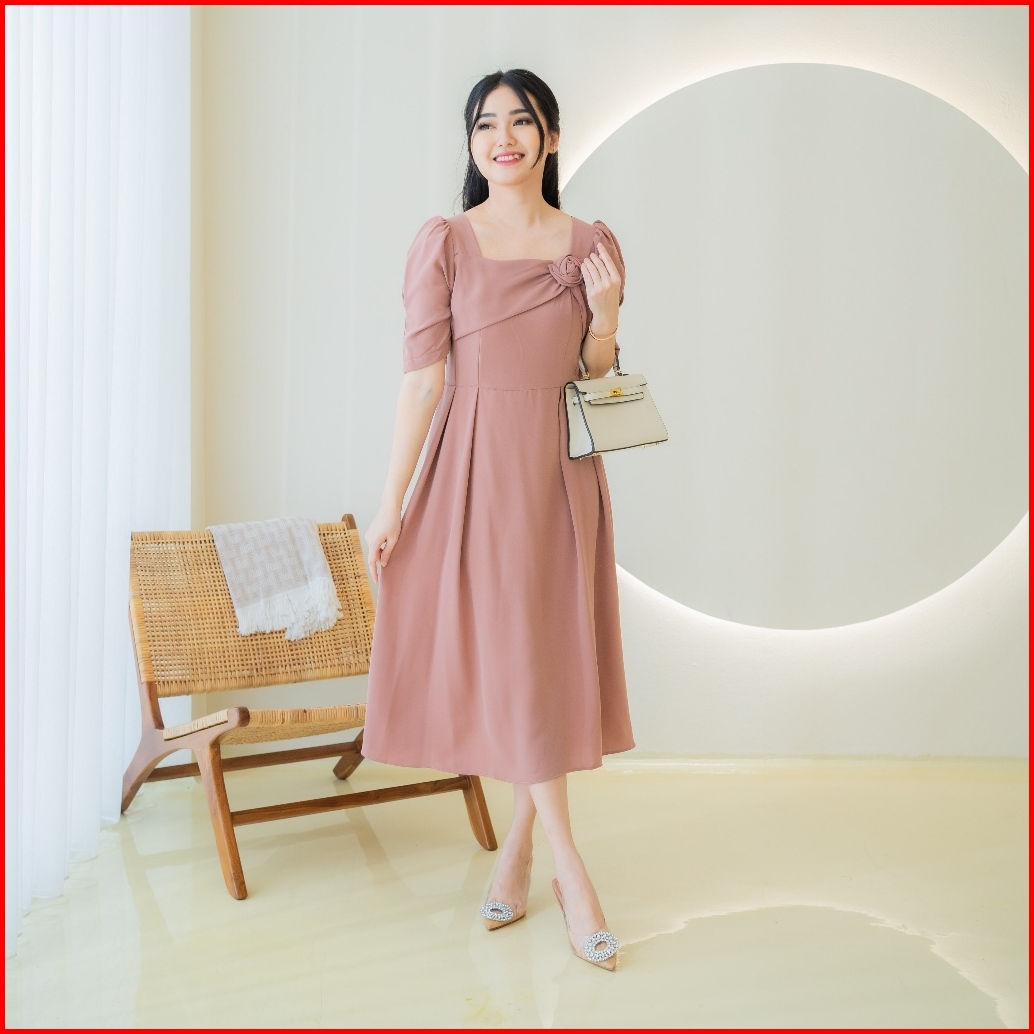 Lilybelle Vanya Dress Kondangan Midi Bunga Casual