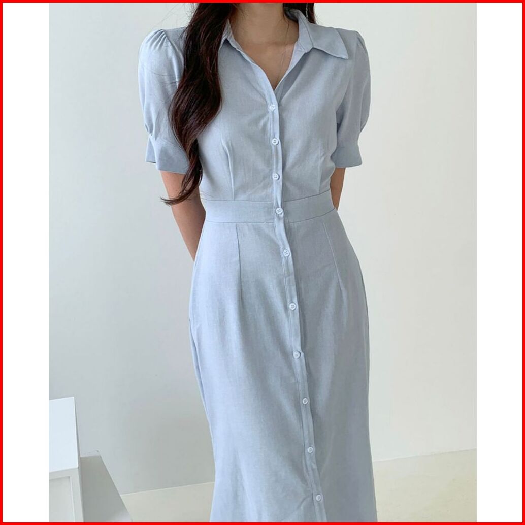 Dress Kantor Wanita Terbaru Midi Drees Korea Terbaru Dress Kemeja Dress Casual