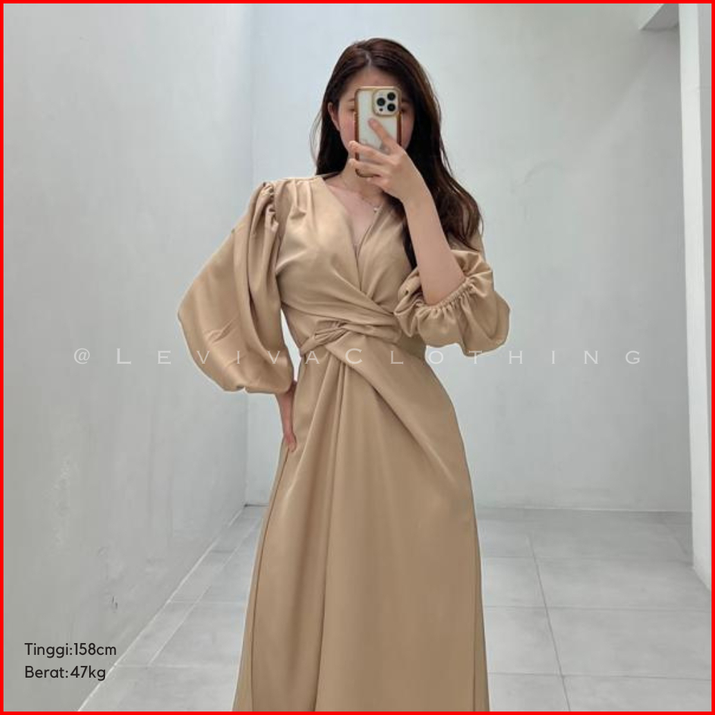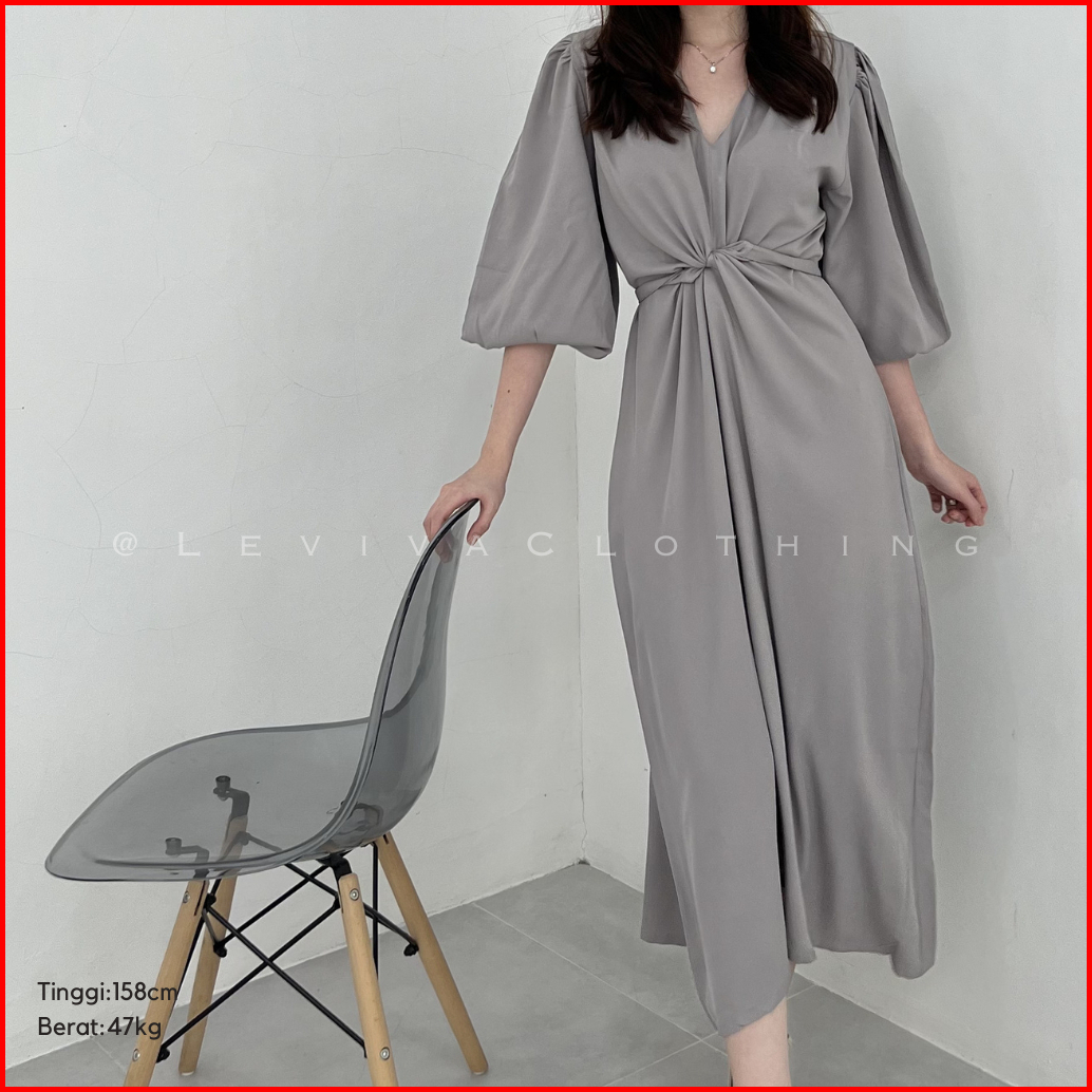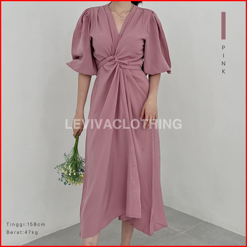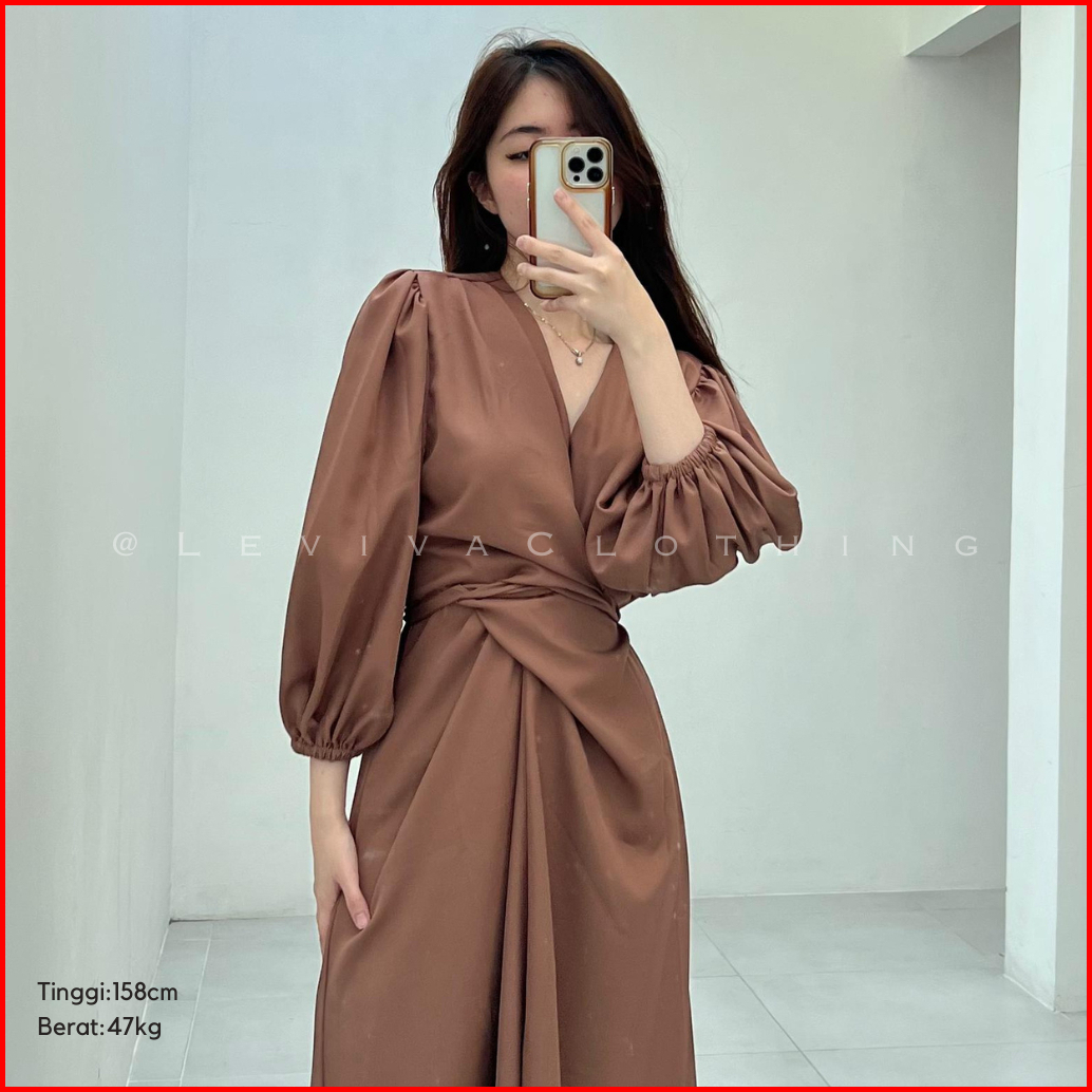 Leviva Abigail Dress Dress Wanita Korean Style Terbaru Dress Casual Formal Mewah Elegan Dress Midi V Neck Big Size Premi