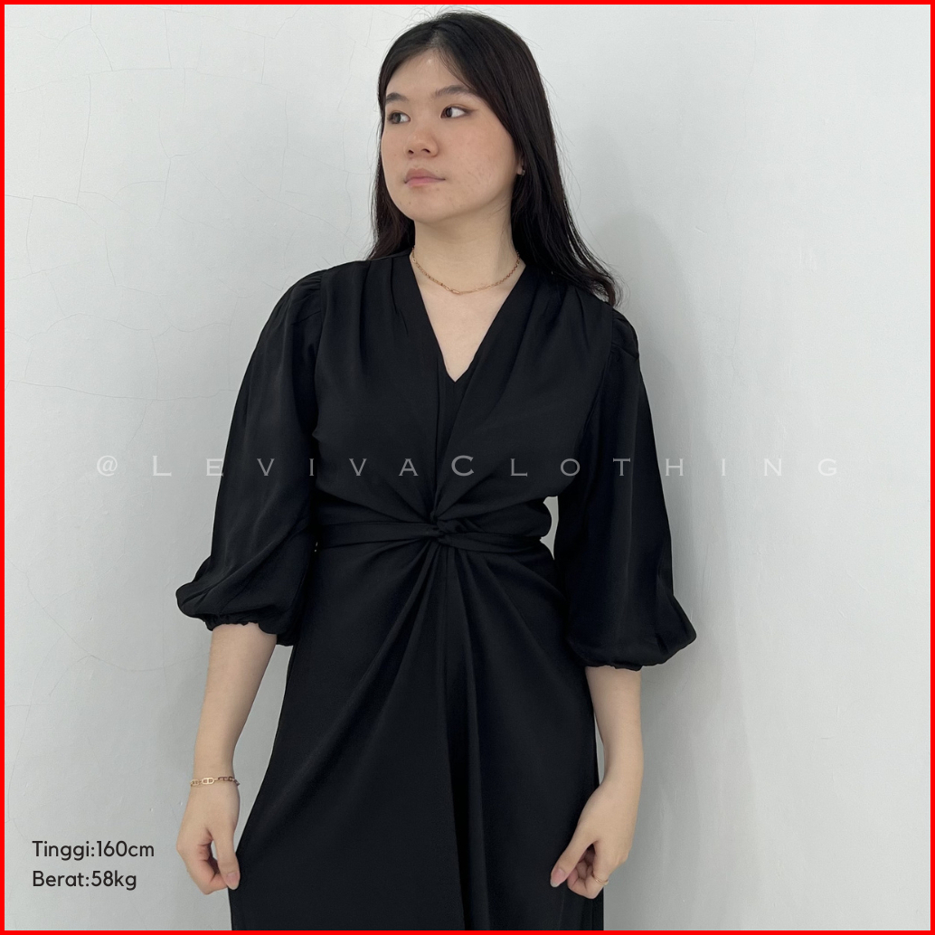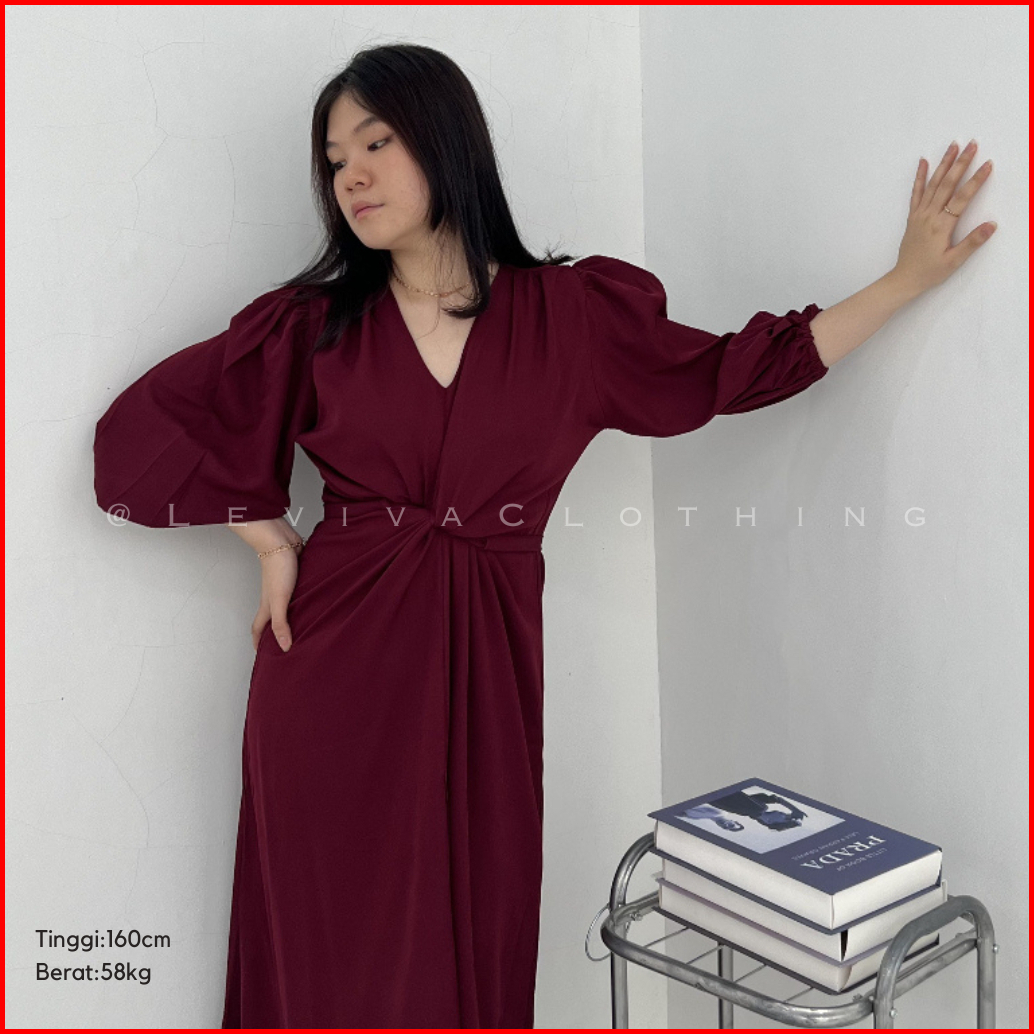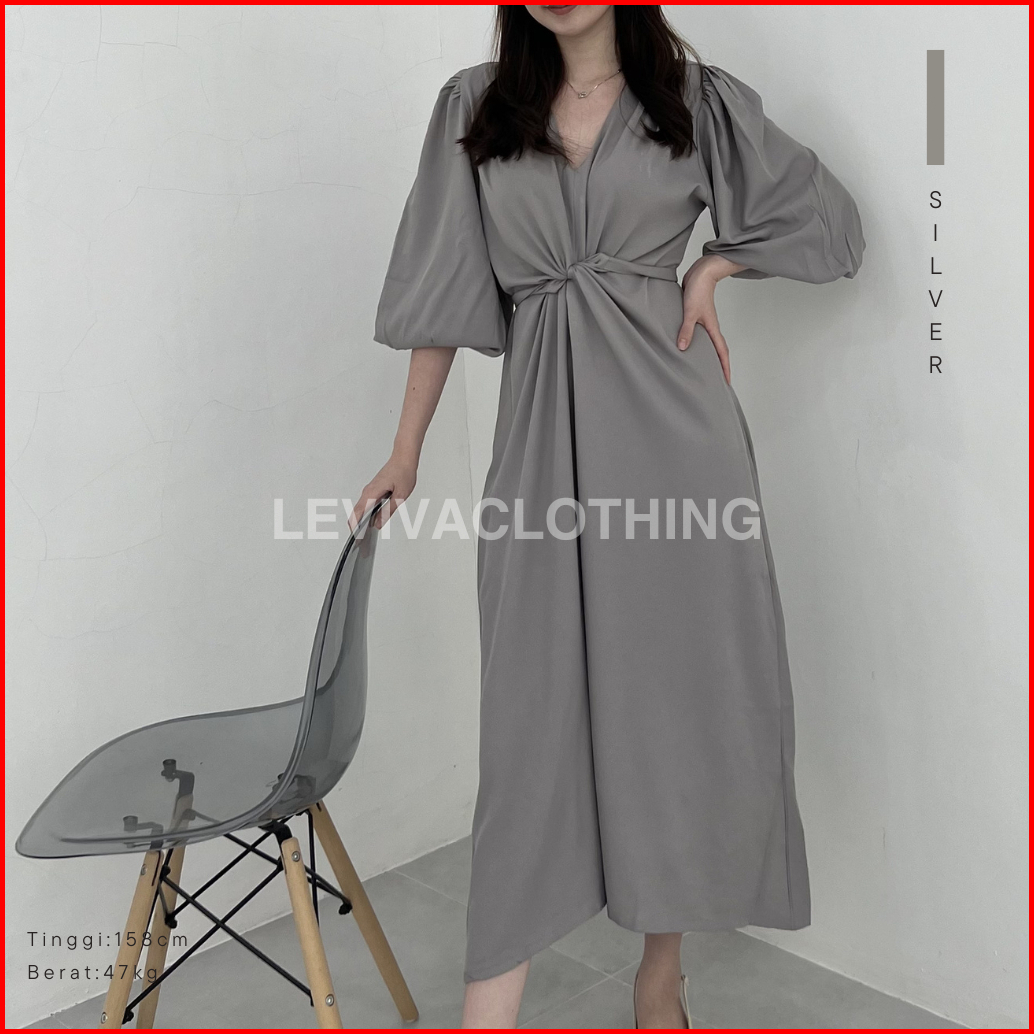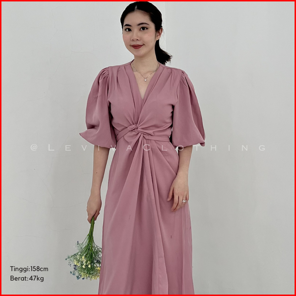 Leviva Abigail Dress Dress Wanita Korean Style Terbaru Dress Casual Formal Mewah Elegan Dress Midi V Neck Big Size Premi