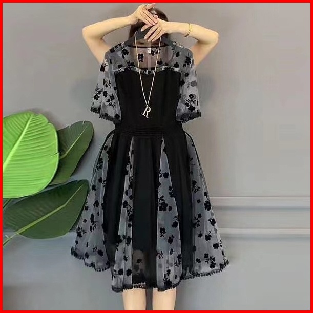 Readydress Brukat Motif Bunga Korean Style Premium Dress Pesta Wanita Premium