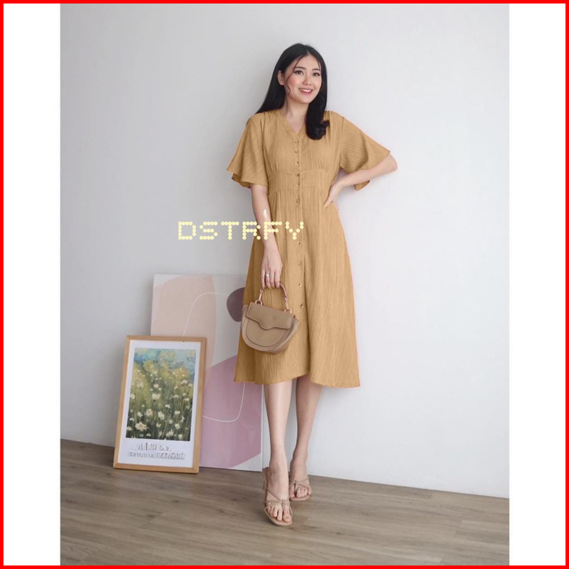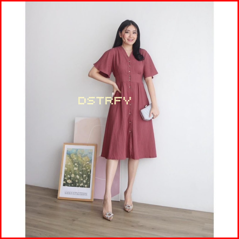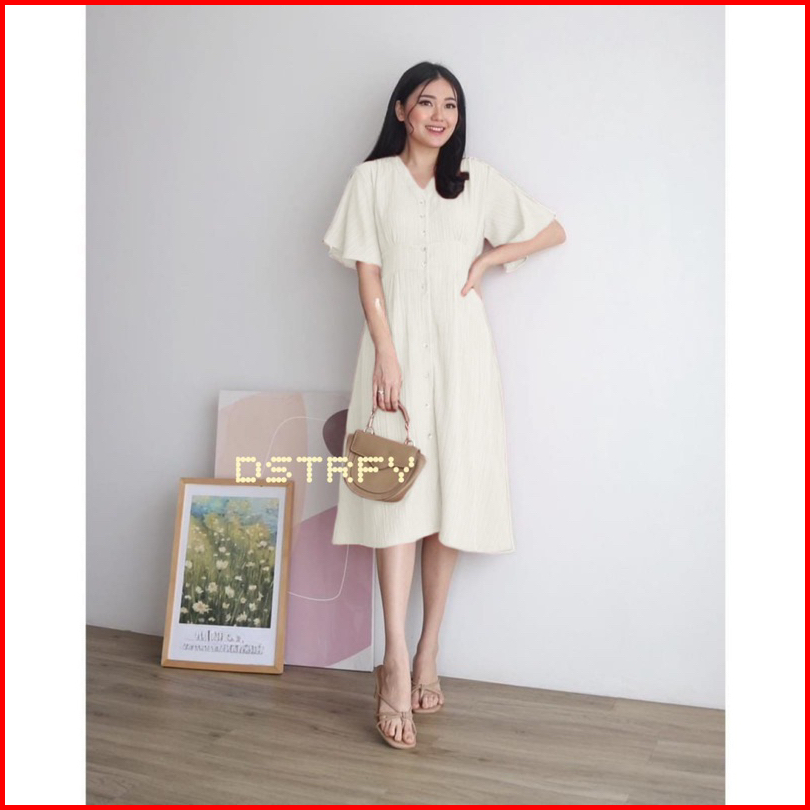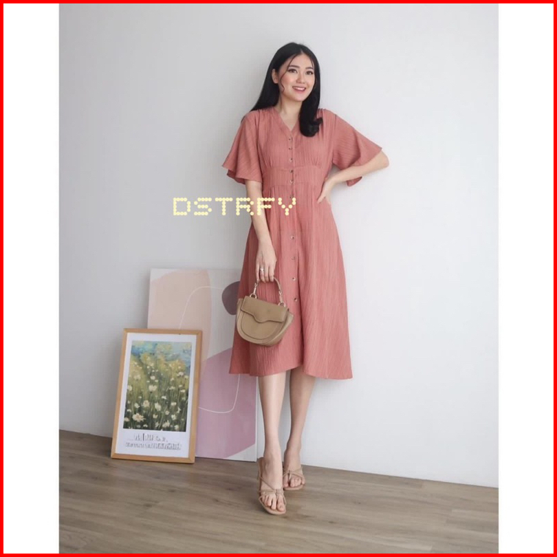 Clarissa Dress Dress Wanita Korea Midi Dress Casual Lengan Pendek