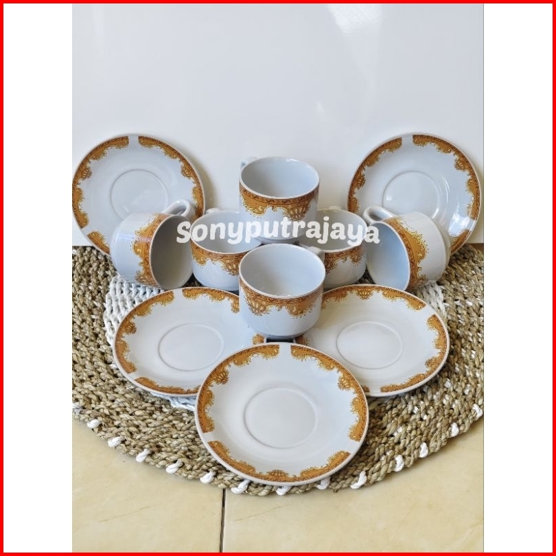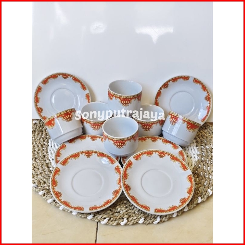 Cangkir Set Keramik Mahkota Isi 6 Tatakan 6 Cangkir Gelas Kopi Teh Gelas Kado Dan Sovenir Cangkir Cafe
