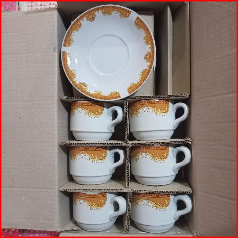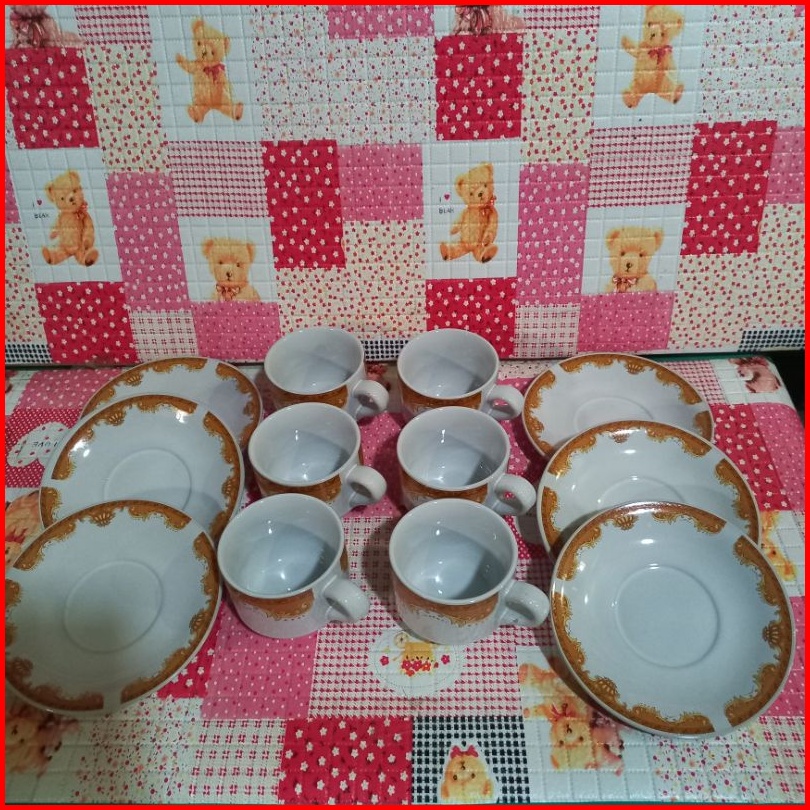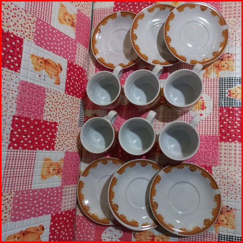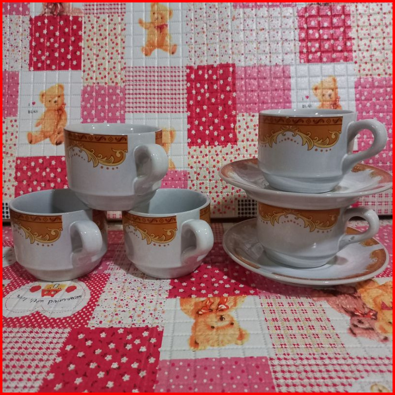 Cangkir Teh Kopi Keramik Motif Mahkota Cantik Mewah Visin Cangkir Motif Set Happymebel01