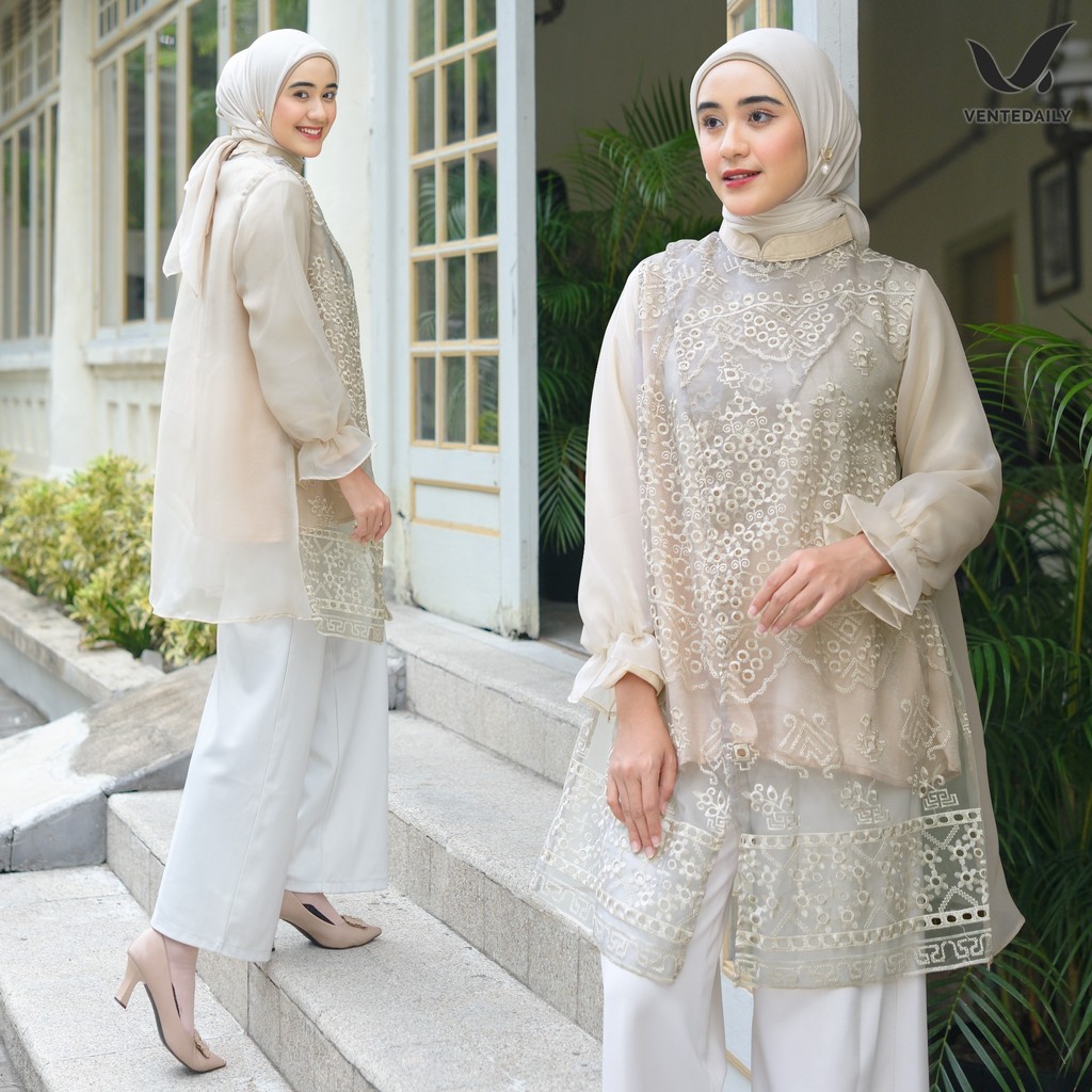 ( RAMADHAN SALE ) Ventedaily - Visha Tunik Atasan Wanita Brukat Organza Baju Furing Outfit Simple Kondangan Kekinian