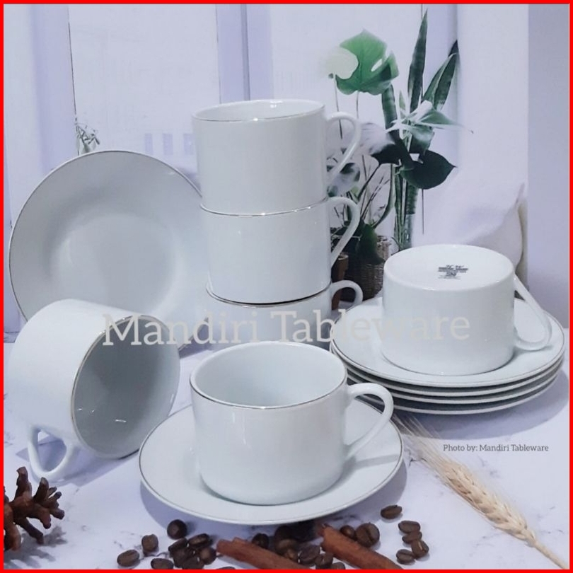 6 Psg Cangkir Set Keramik Bulat Line Cangkir Kopi Cangkir Teh