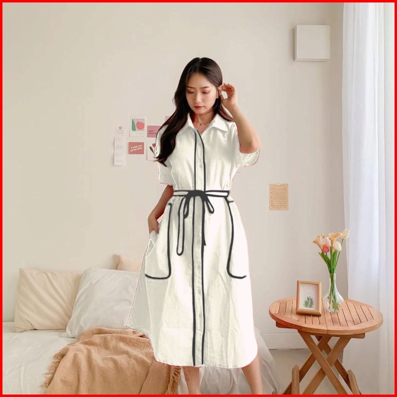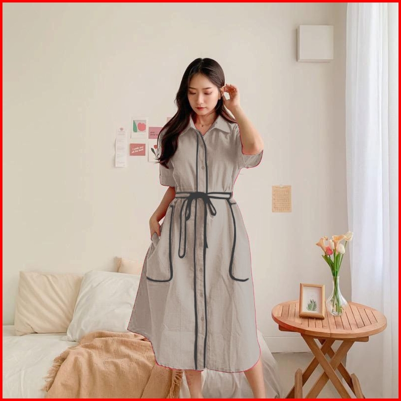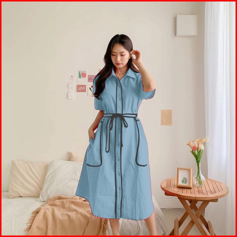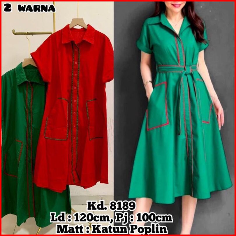 Fiona Dress Merah - Gaun Katun Poplin Merah Hijau Botol Imlek Gaun Merah Pink Muda Fanta