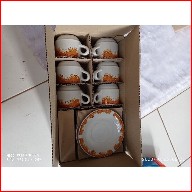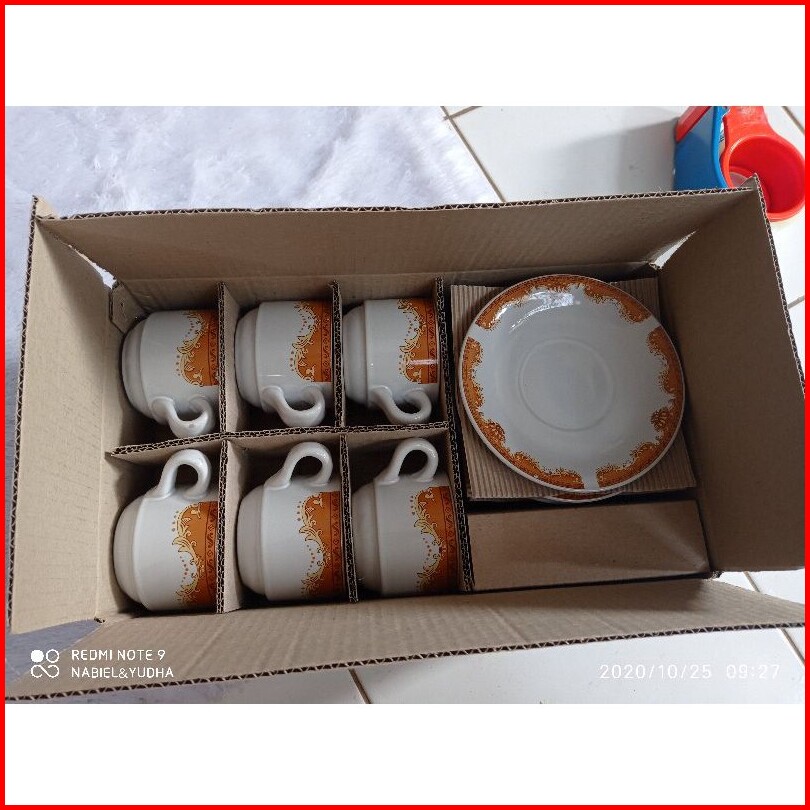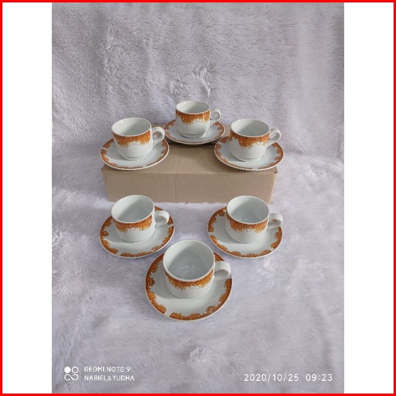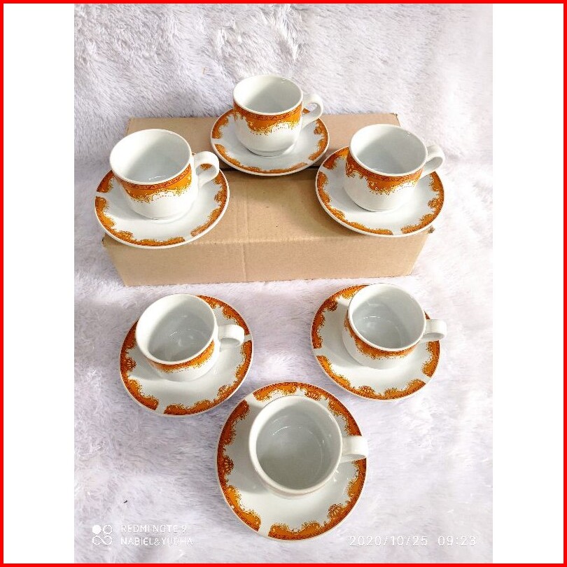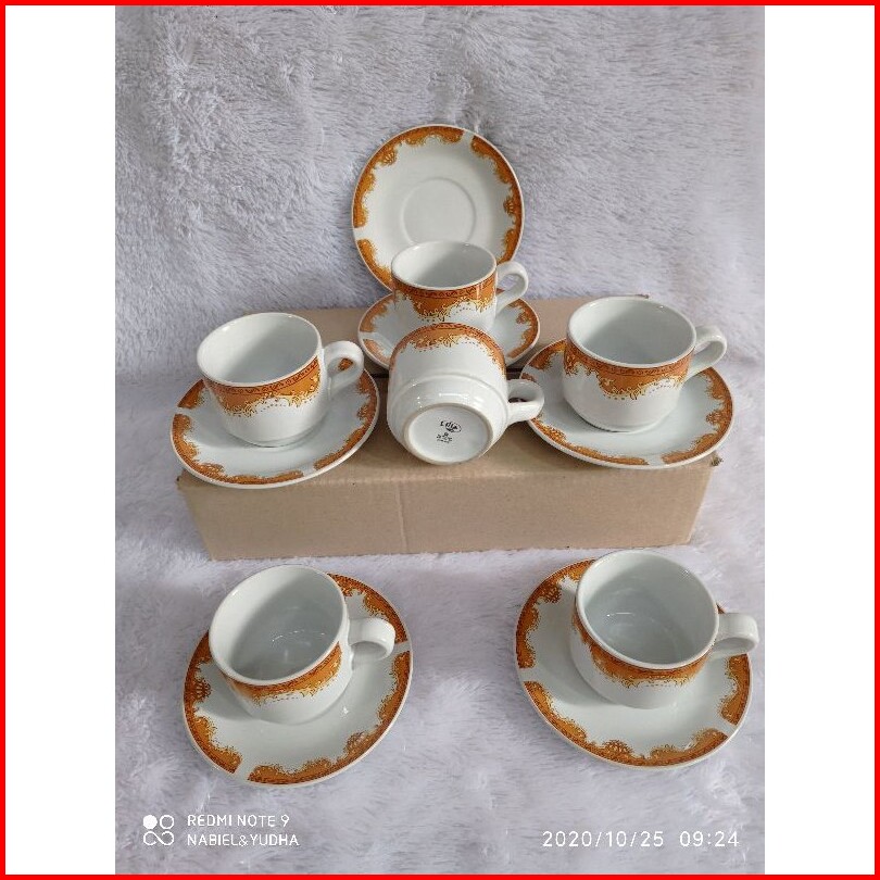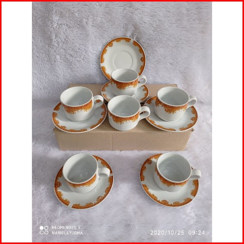 Cangkir Kopi Set Cangkir Keramik Motif Mahkota Tatakan