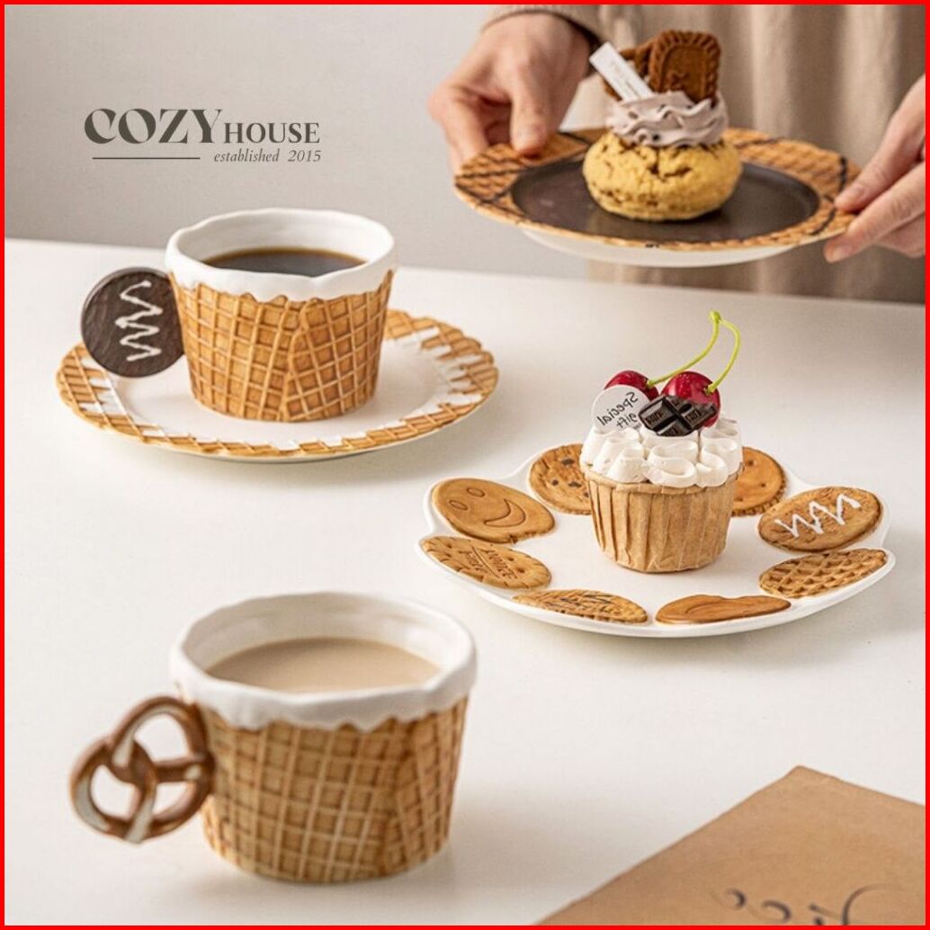 Cozyhouse Kuka Set Piring Mug Keramik 3d Desain Bakery Lucu Unik