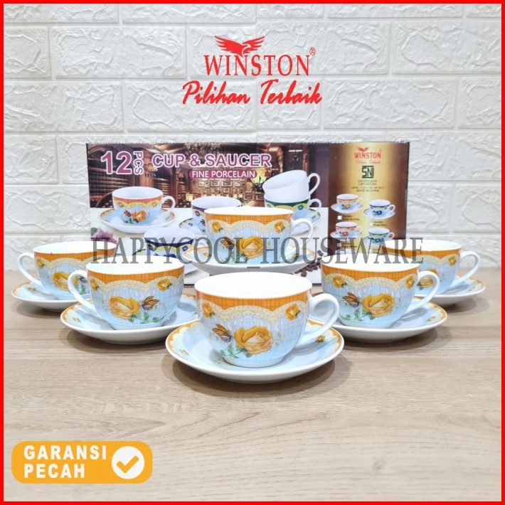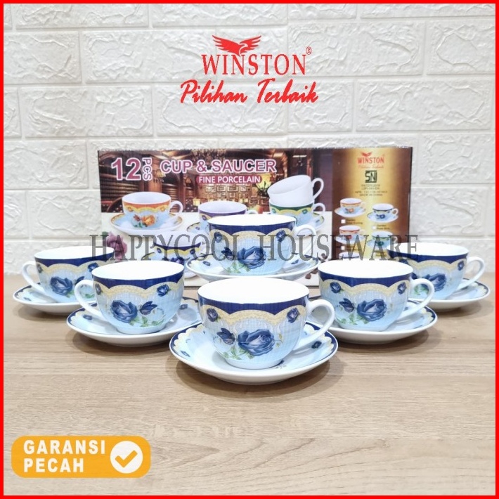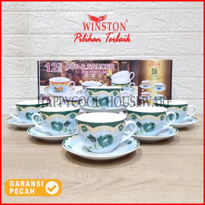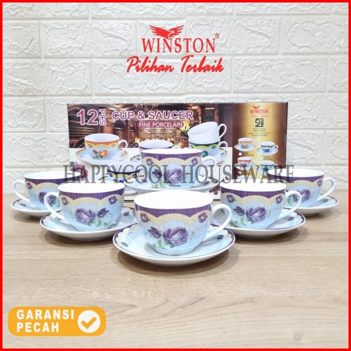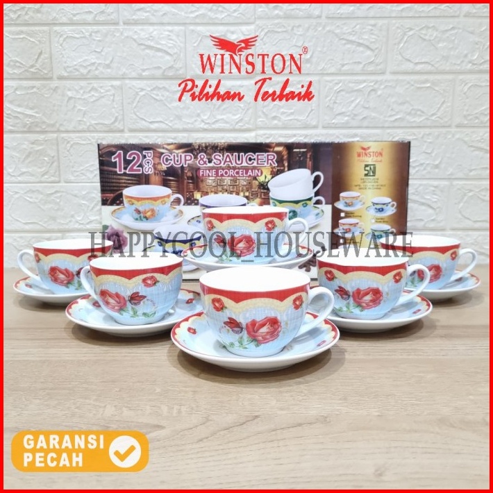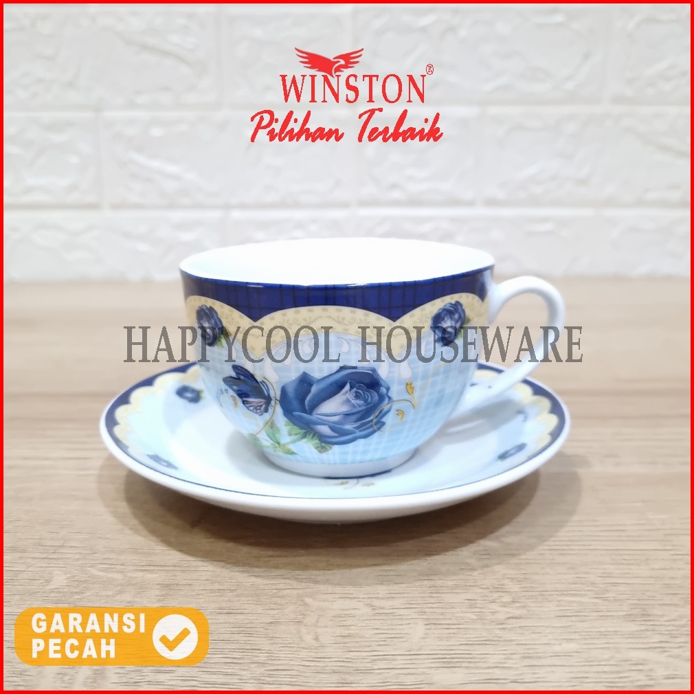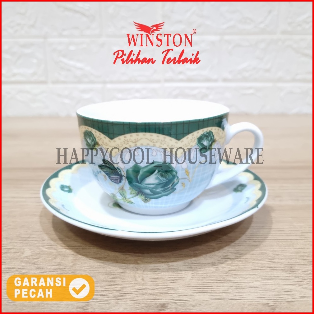 Winston Cangkir Tatakan Keramik Set Garden Rose Cangkir Minum 6pasang