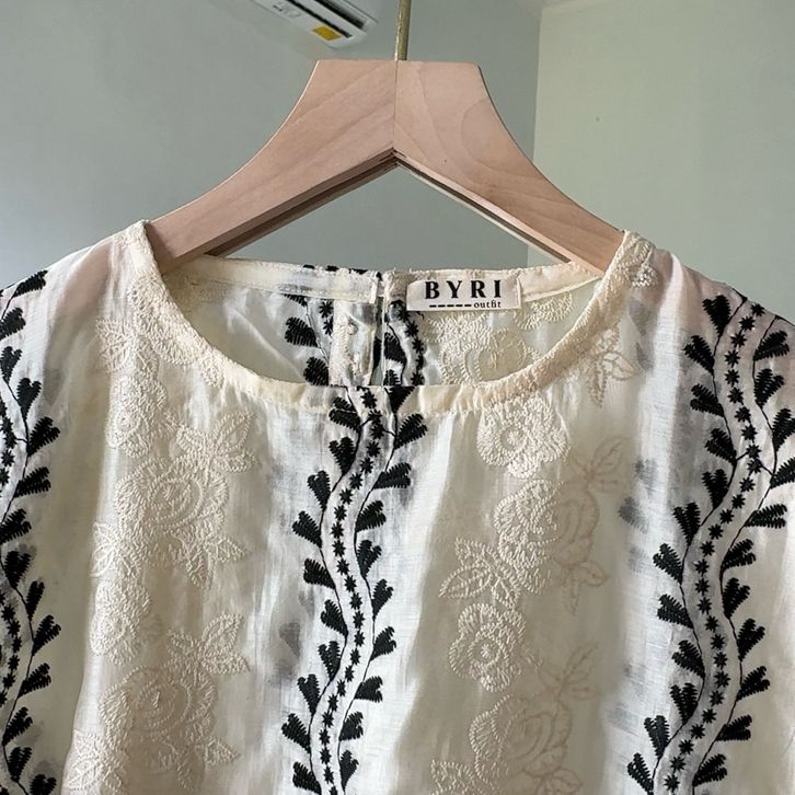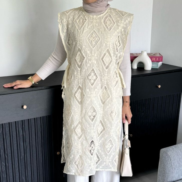 [Star] Meera Outer Brokat Lace Embroidery Bunga-Bunga Katun Outfit Atasan Baju Wanita Kondangan Simple Elegan Kekinian