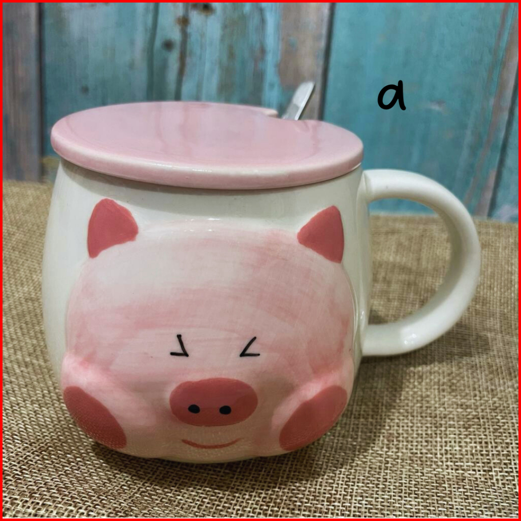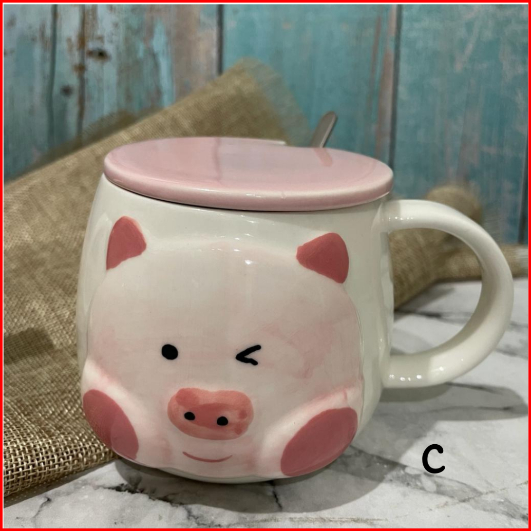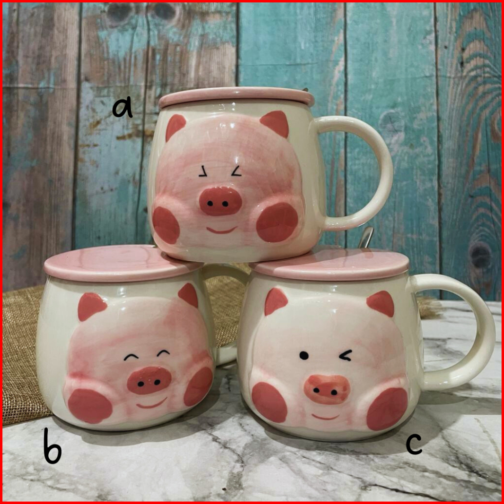 Mug Keramik Pinky Piggy Kopi Teh With Lids Special Drawings