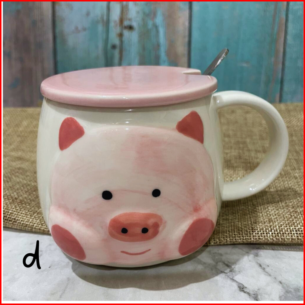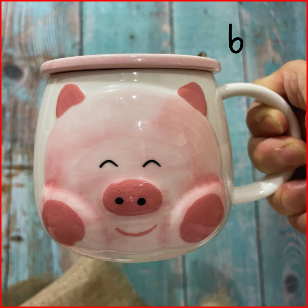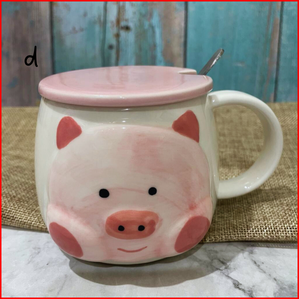 Mug Keramik Pinky Piggy Kopi Teh With Lids Special Drawings