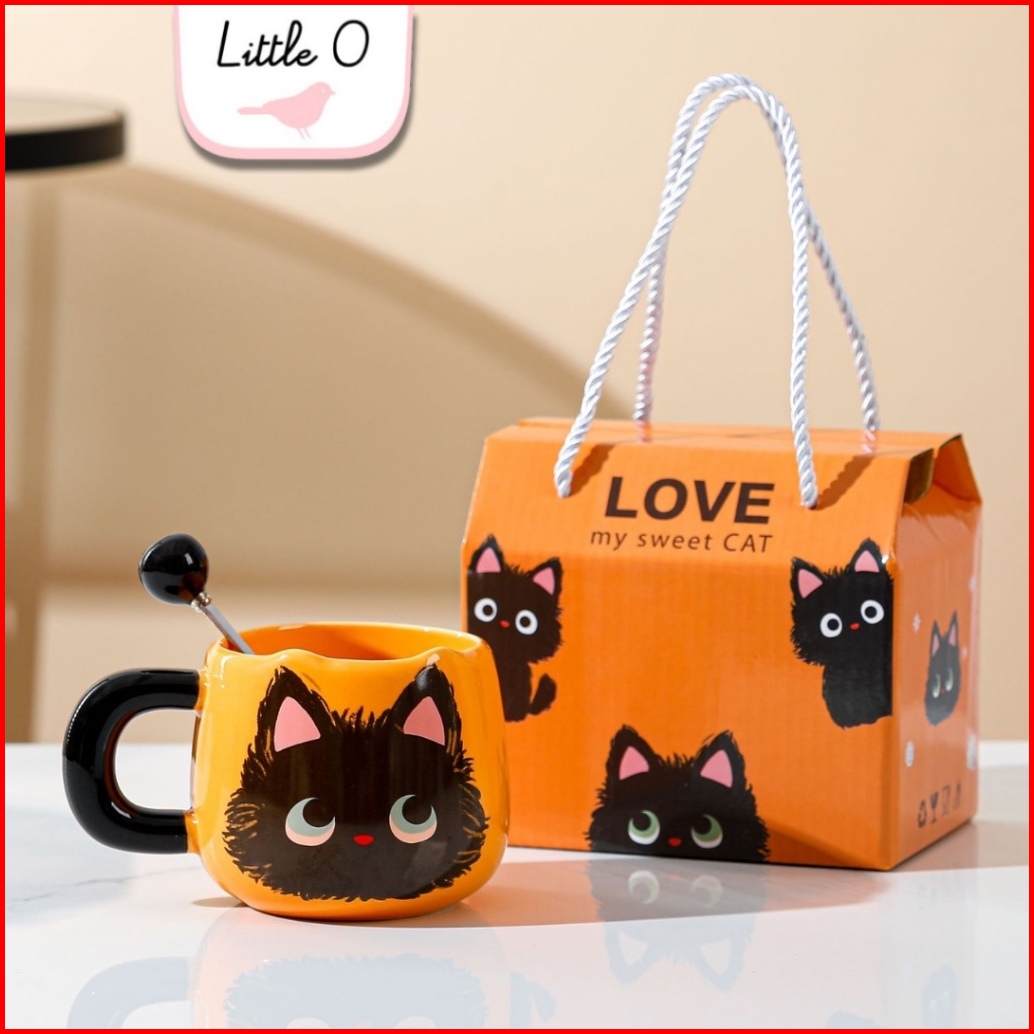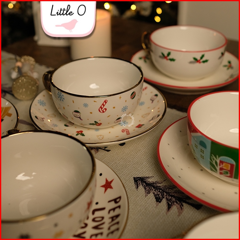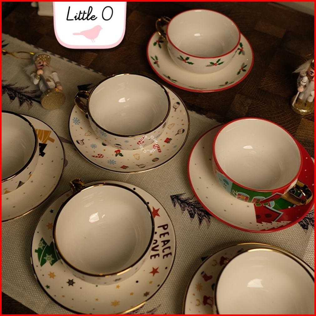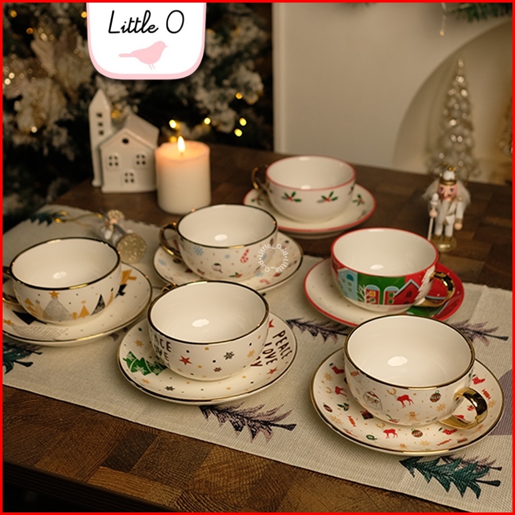 Little O Free Sleeve Mug Christmas Porcelain Mug Cangkir Natal Mug Souvenir Xmas Ceramic Set Tea Spoon New Cat Mug Hampe