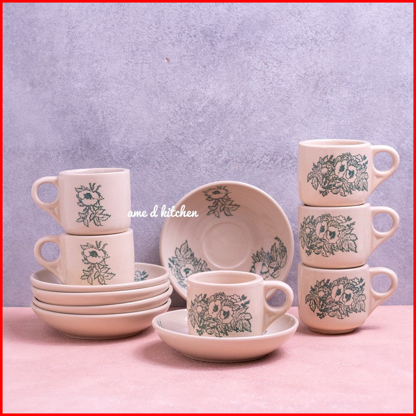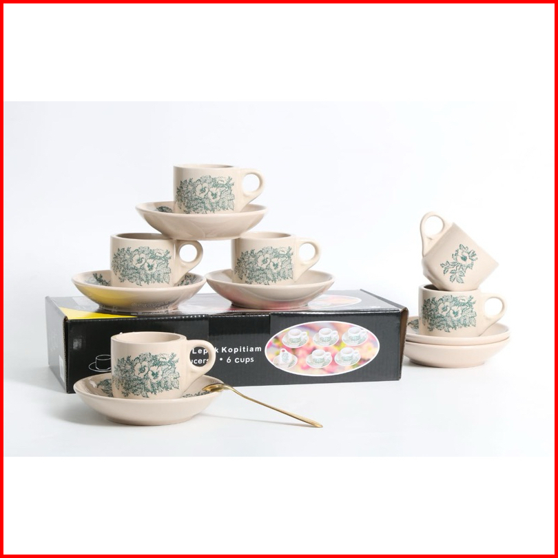 Cangkir Lepek Kopi Keramik Set 6 6 Pcs Cangkir Lepek Kopitiam