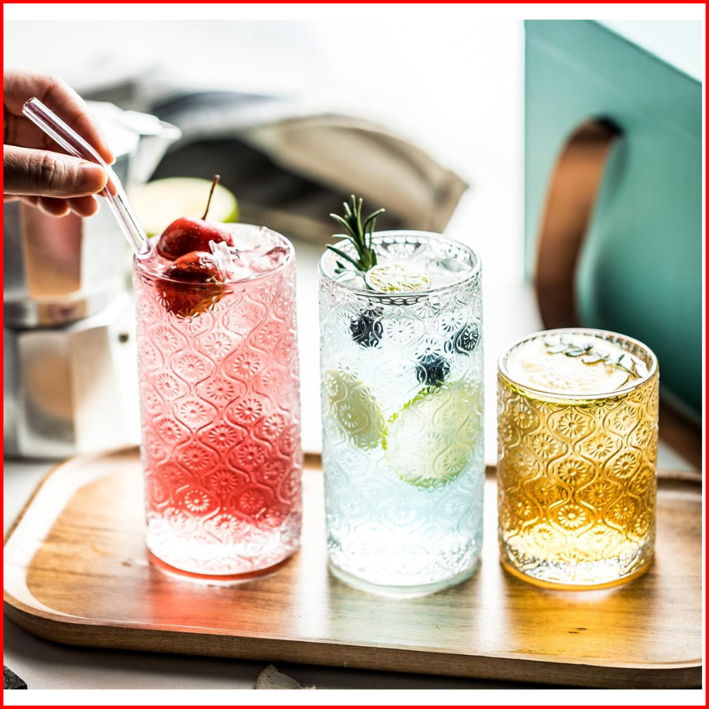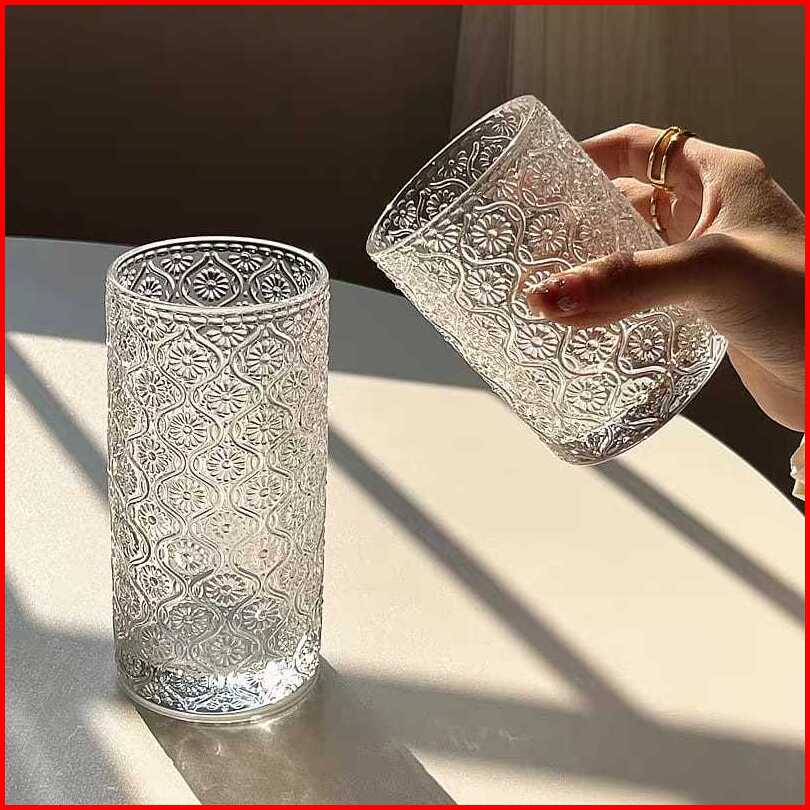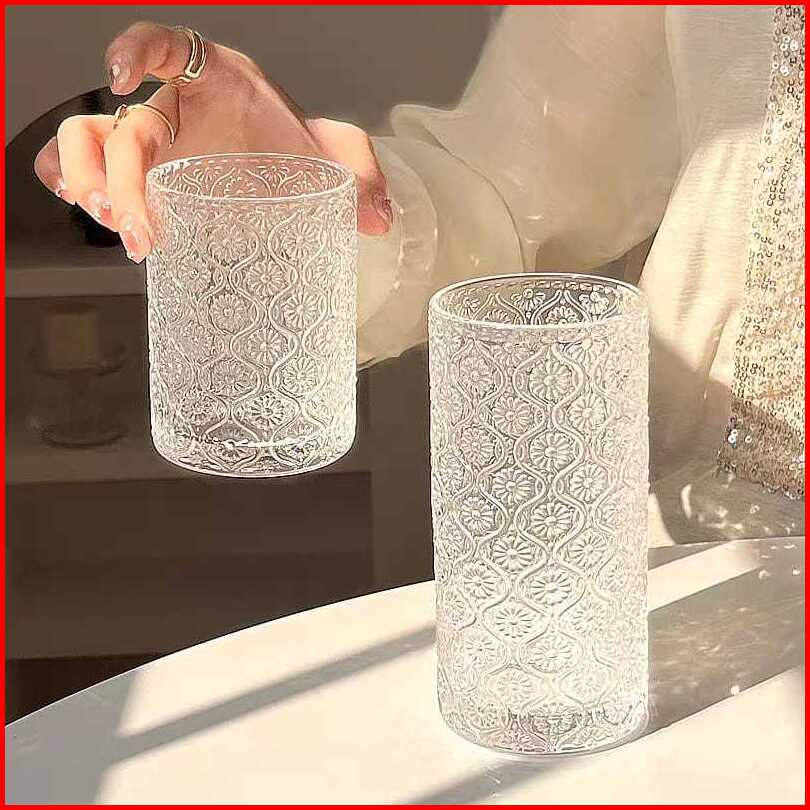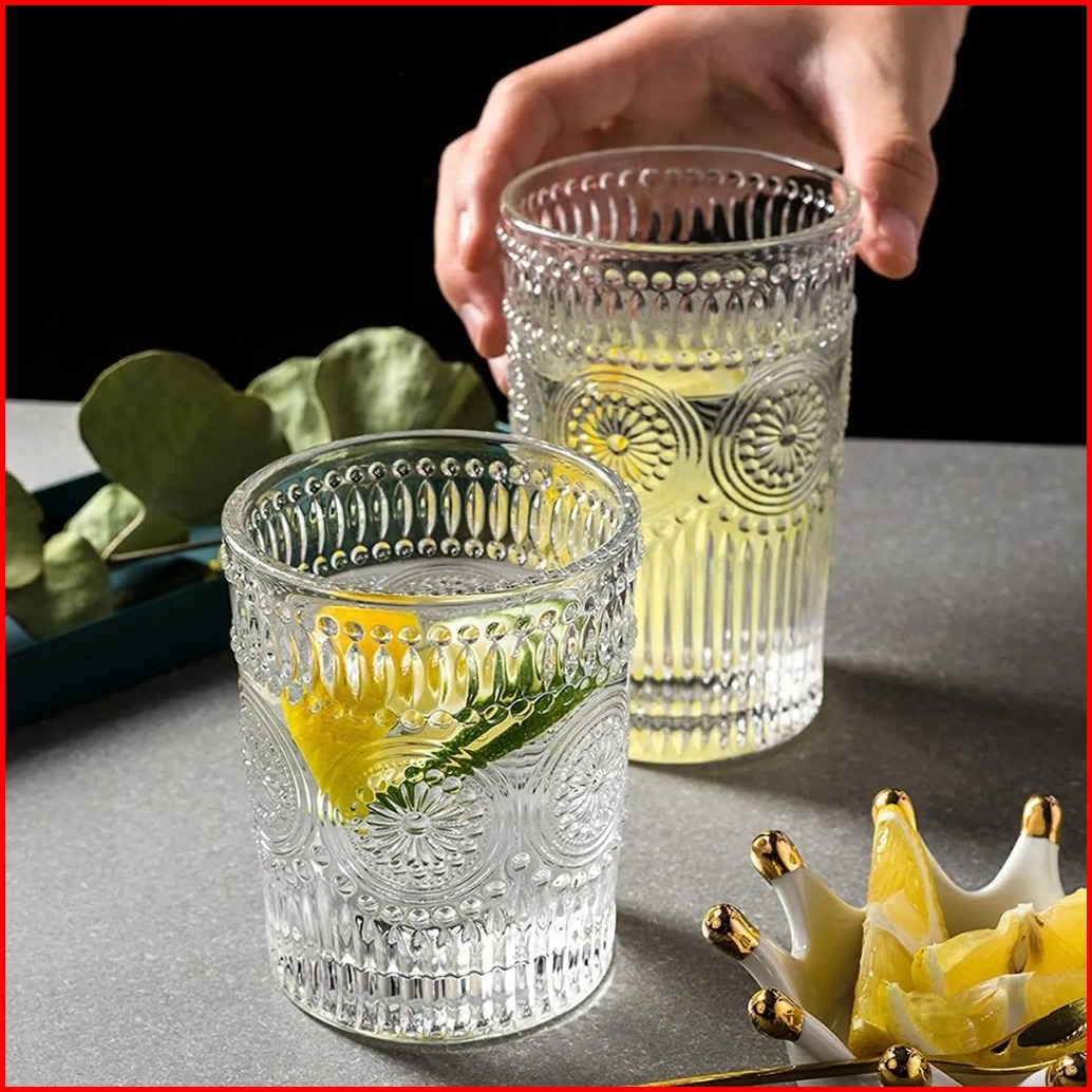 6pc Gelas Kaca Kristal Emboss Gelas Cafe Bar Coctail Mojito Gelas Kaca