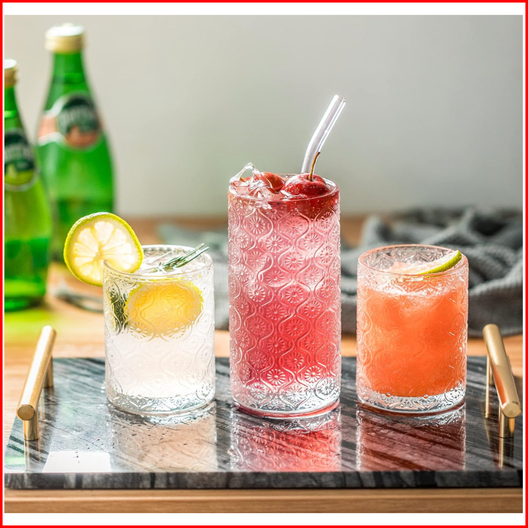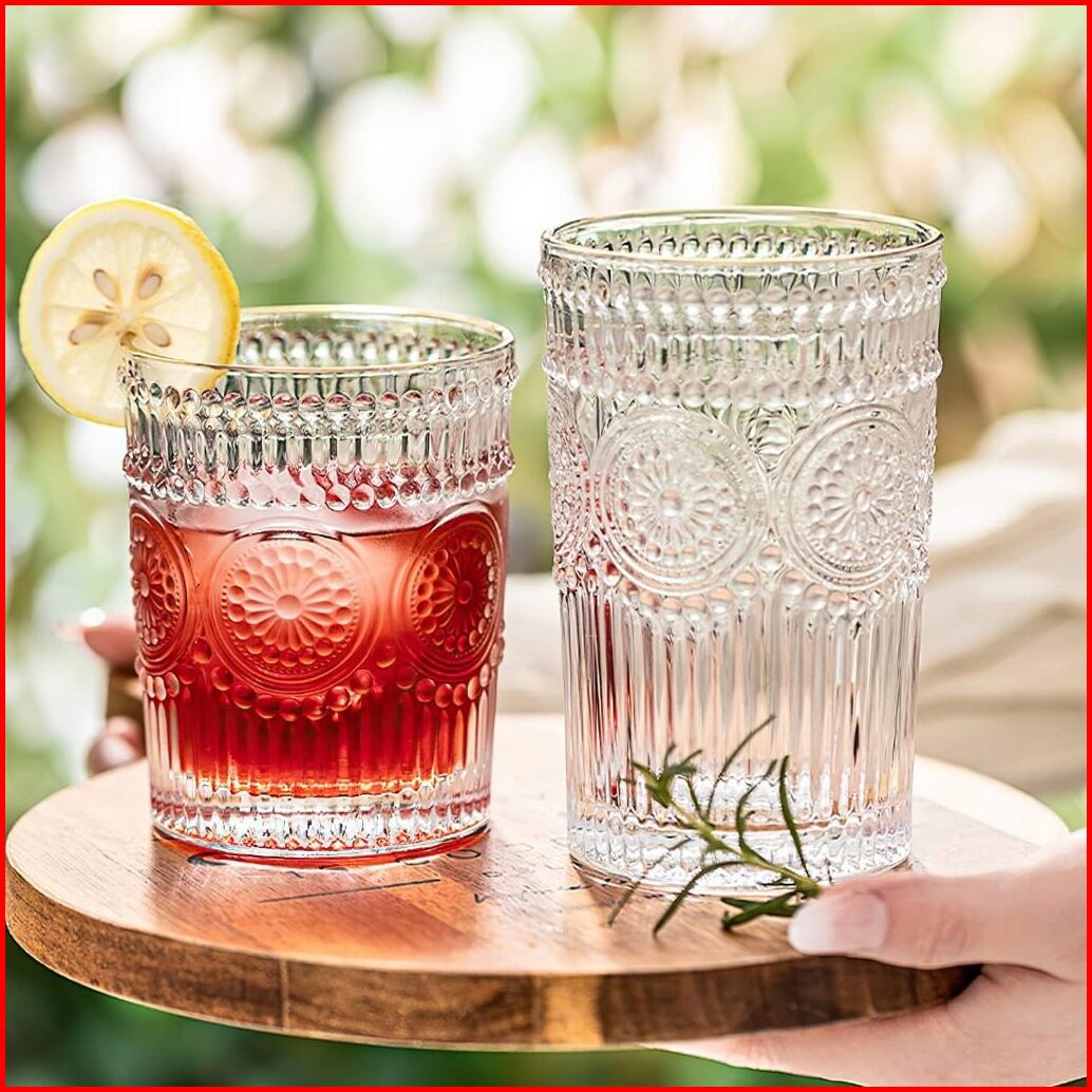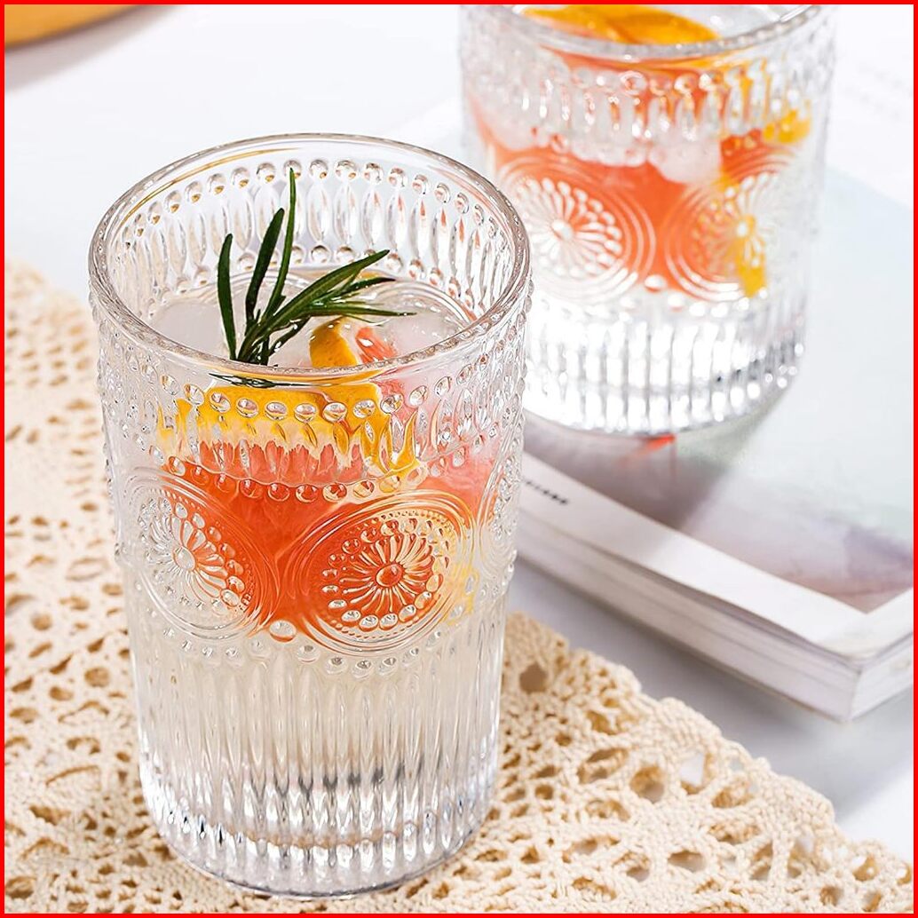6pc Gelas Kaca Kristal Emboss Gelas Cafe Bar Coctail Mojito Gelas Kaca