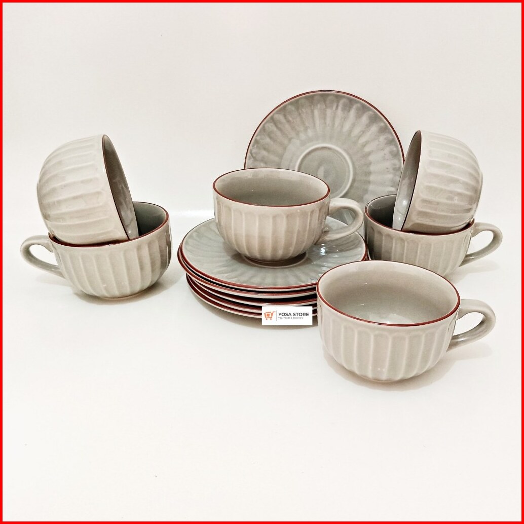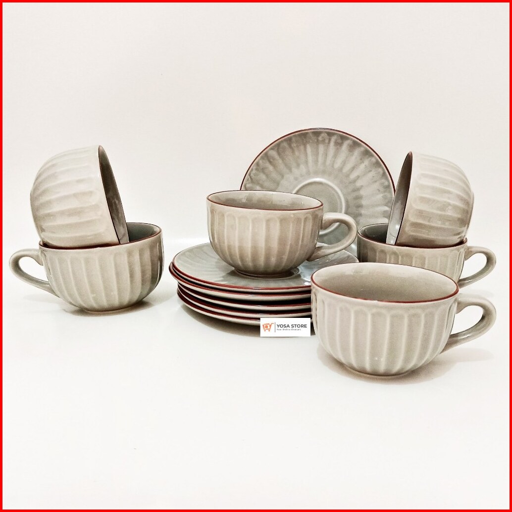 Cangkir Keramik Coffee Latte Kopi Motif Ramekin Kpcncsr Abu Abu 12pc