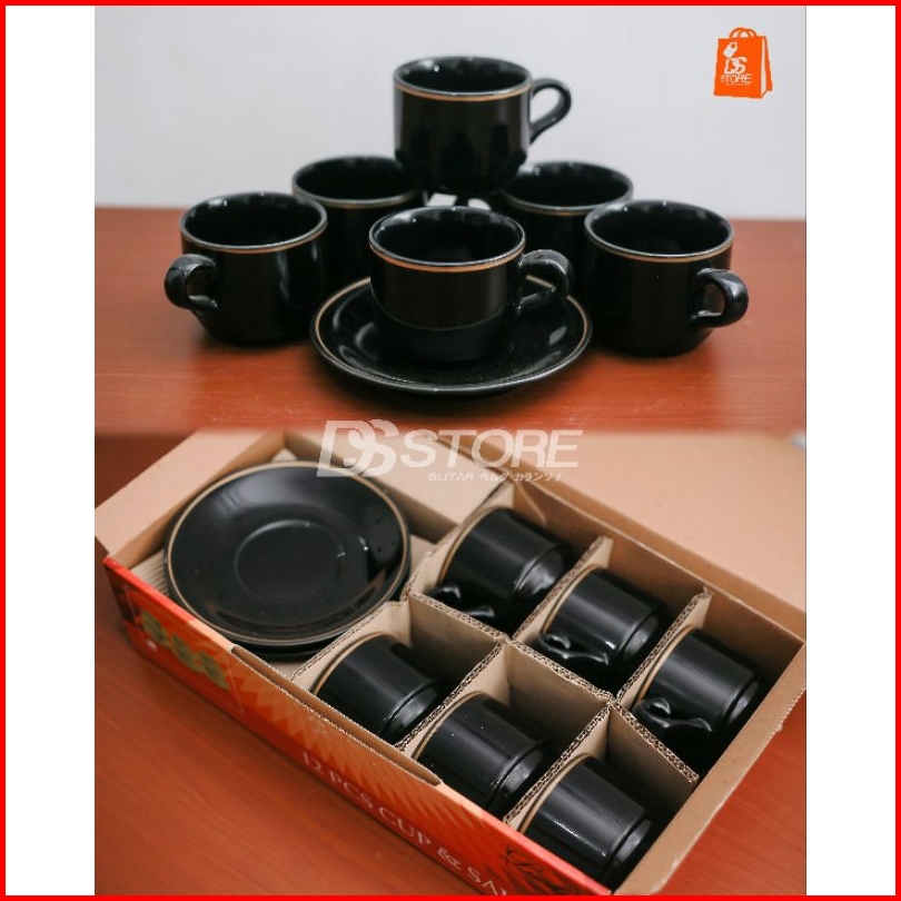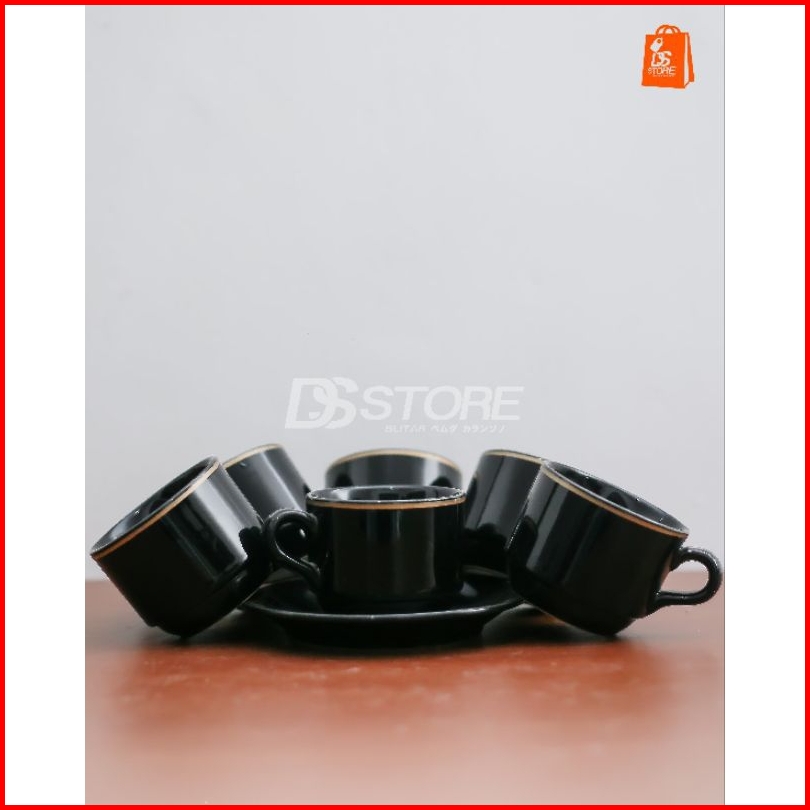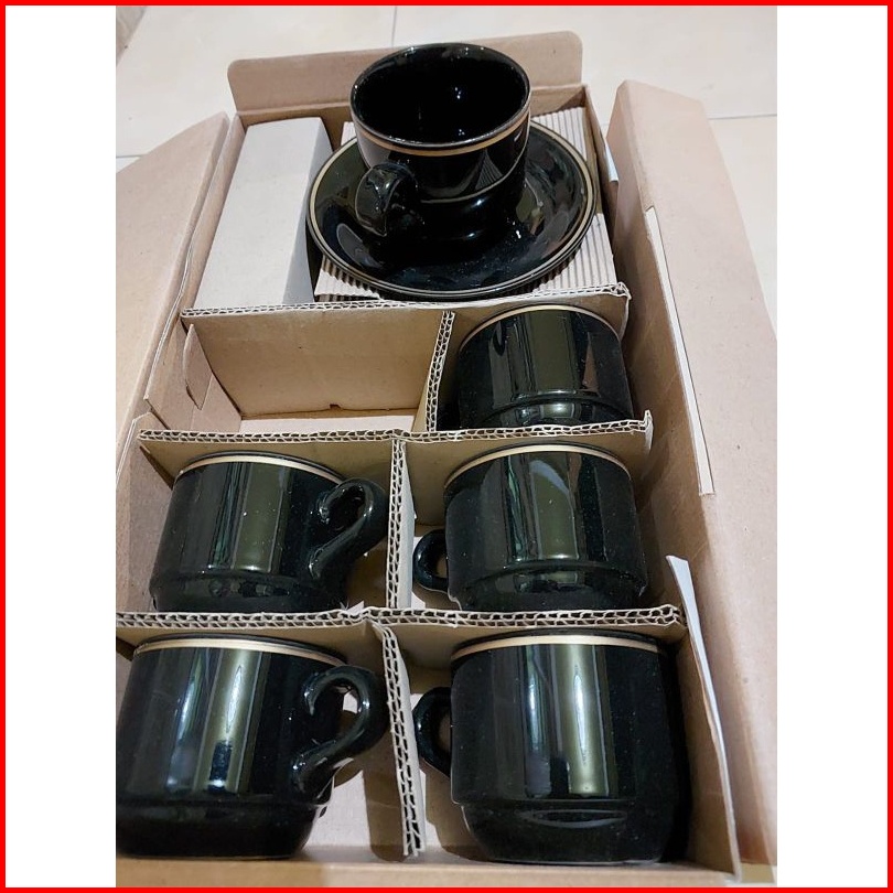 Cangkir Set Black Gelas Kopi Cangkir Set Keramik Kopin Mug Tatakan