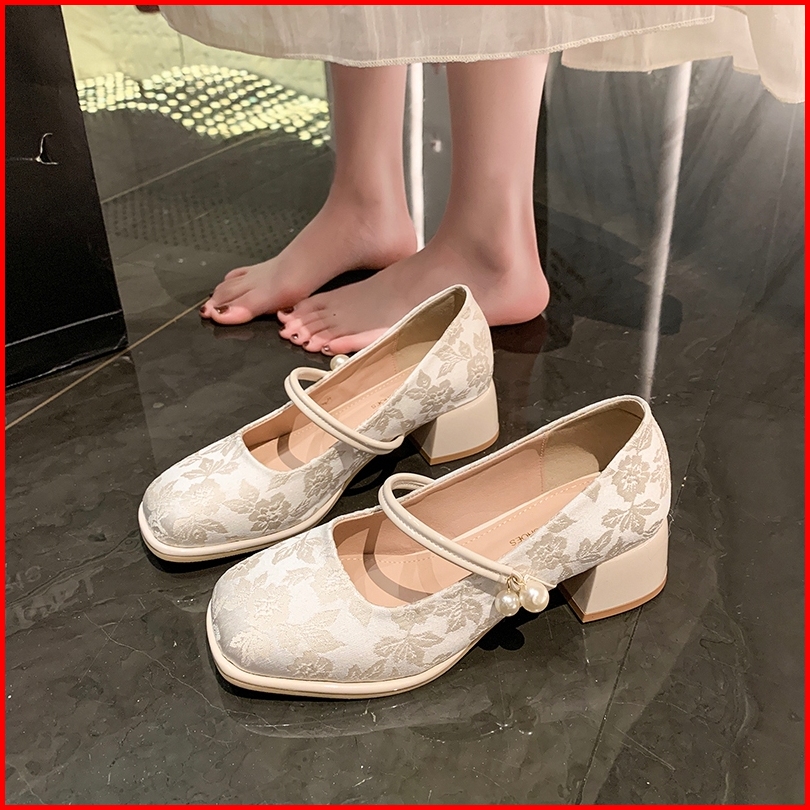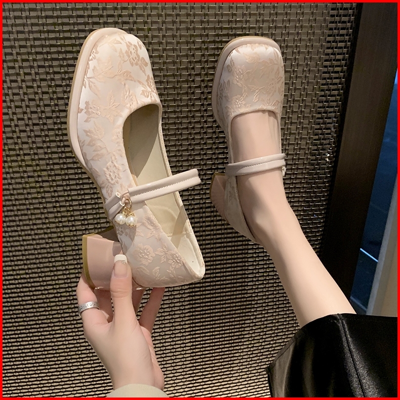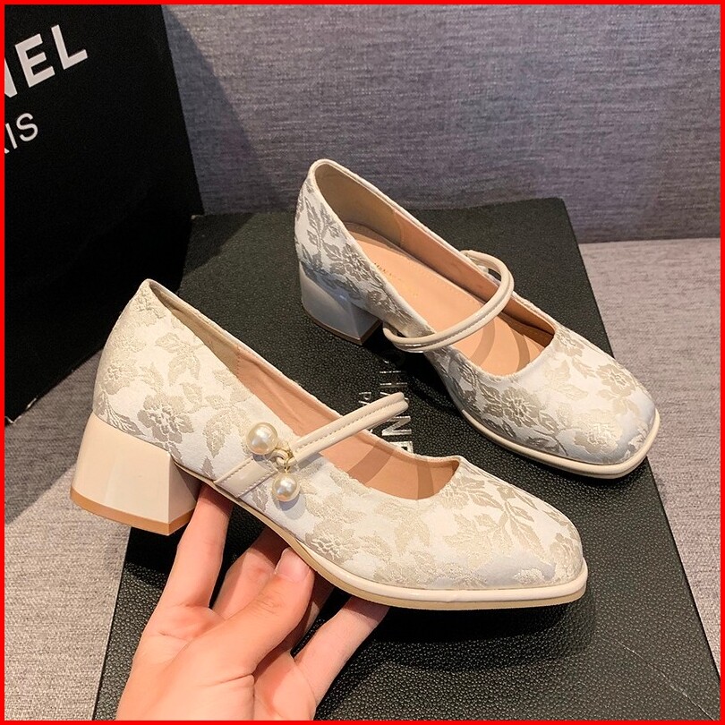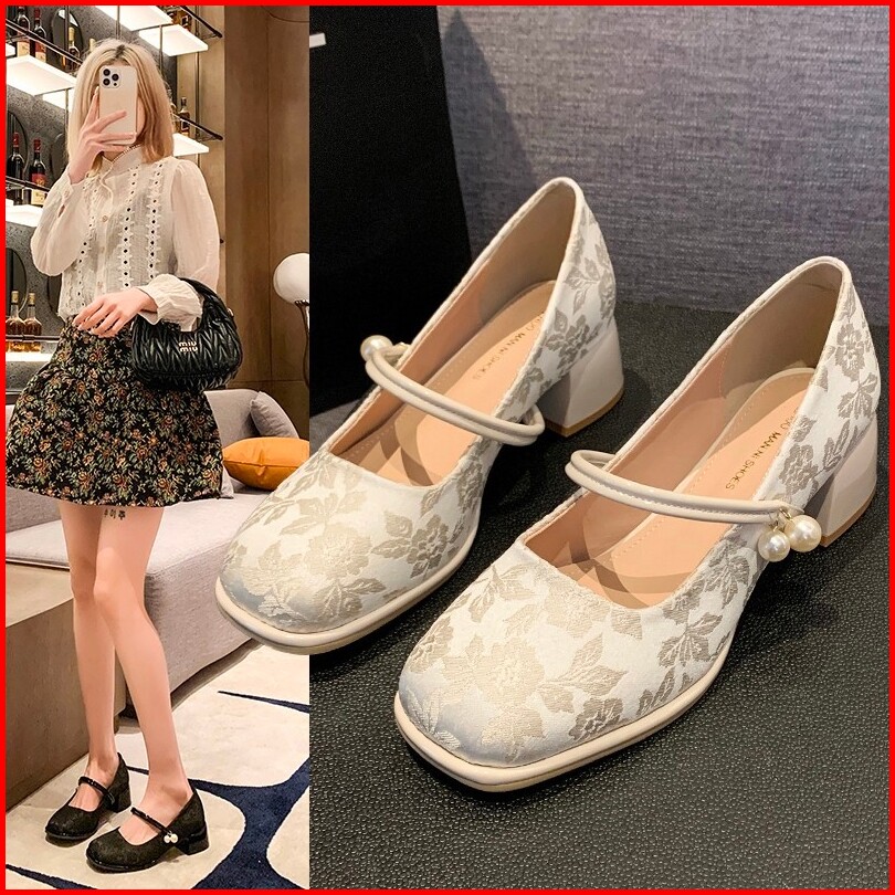 Sepatu High Heels Hak Tahu Chunky Tinggi 5cm Kantor Wanita Hitam Strappy Tali Kerja Kantor Pesta Terbaru Kekinian Tumit