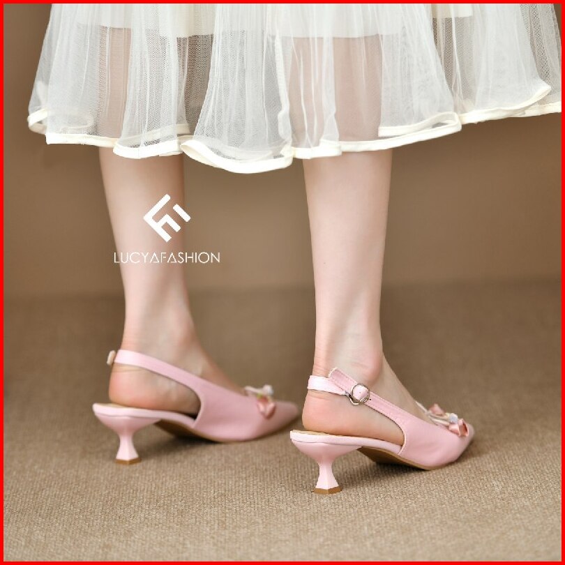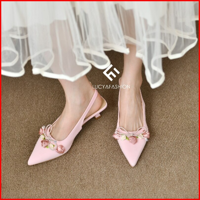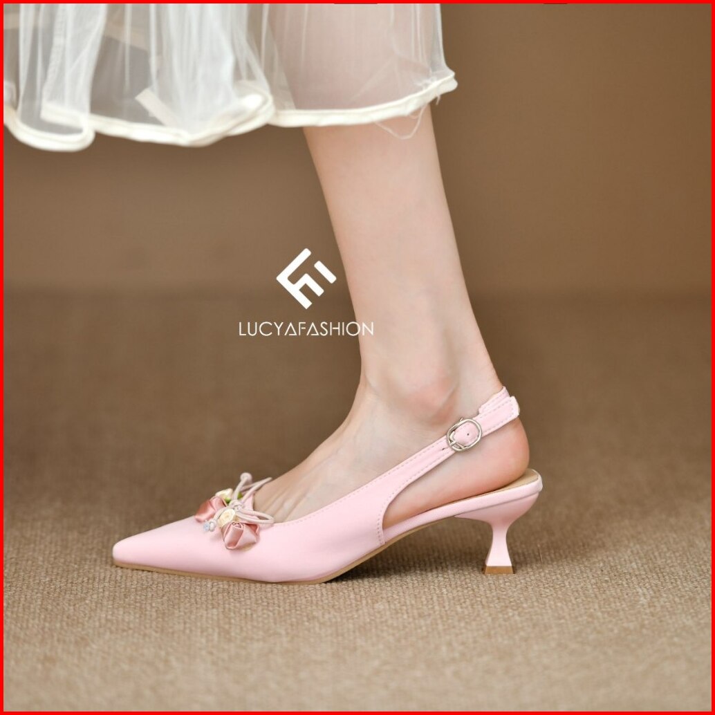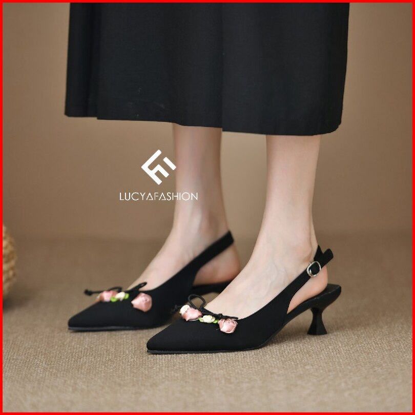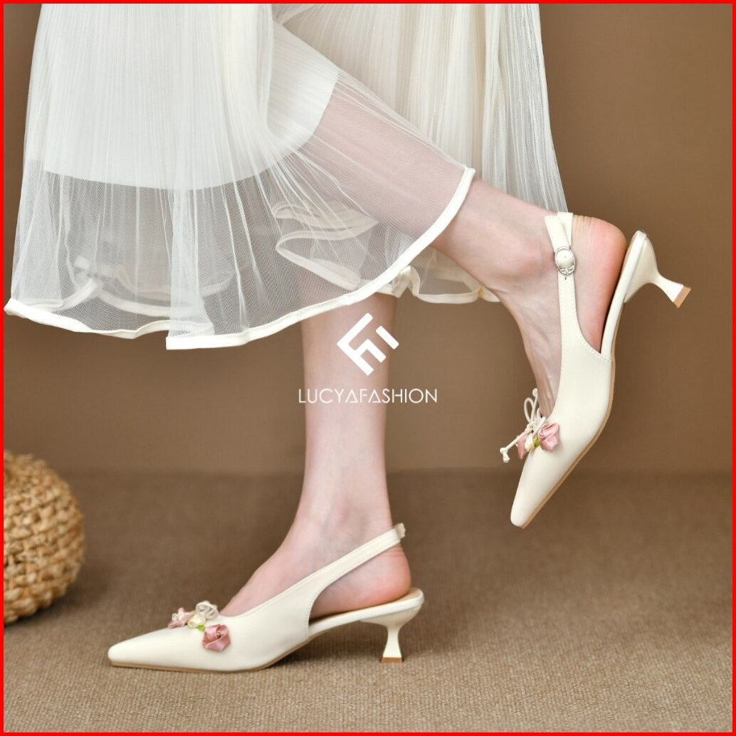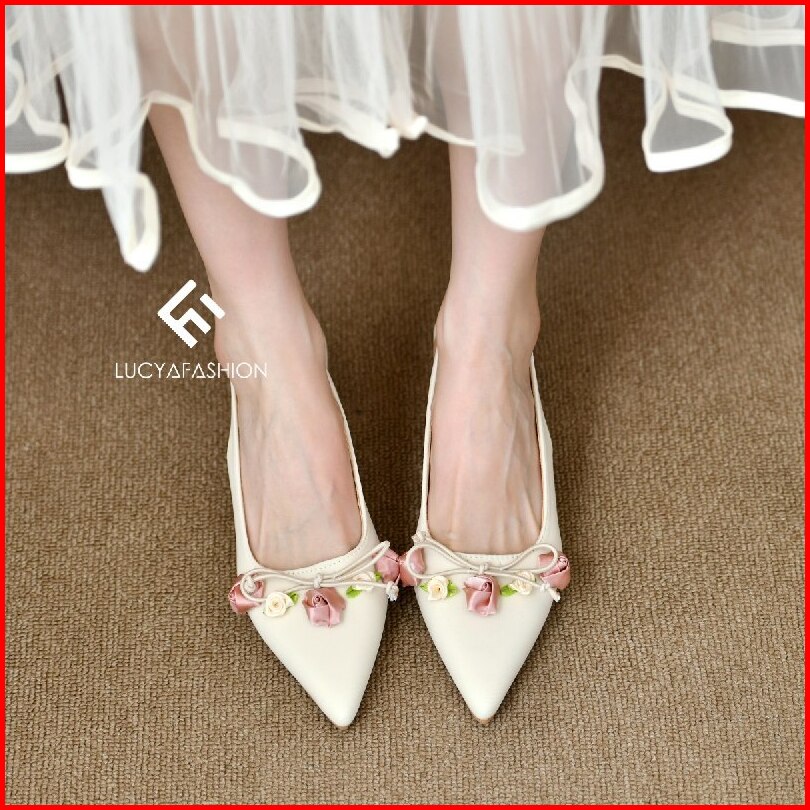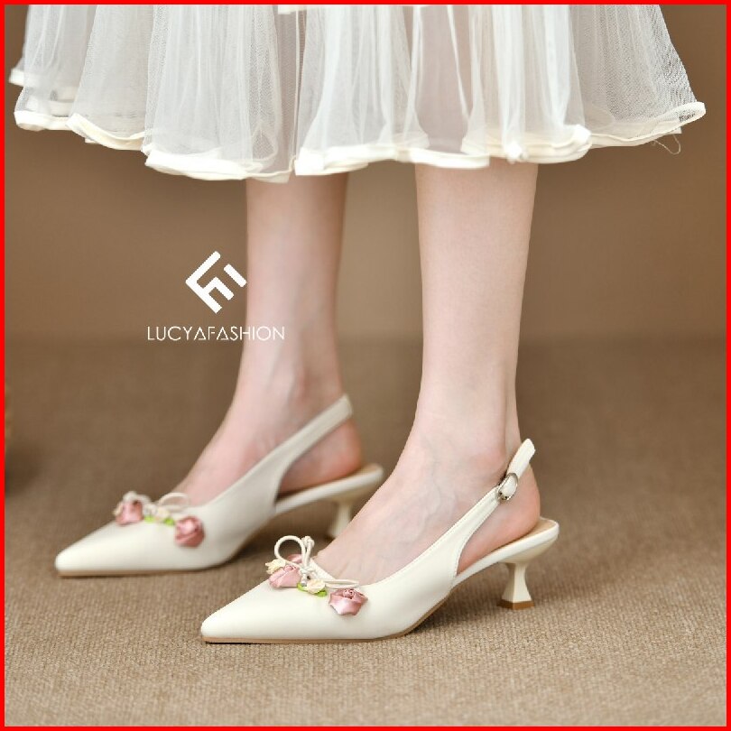 1006 Sepatu Heels Pesta Wanita Elegan Motif Bunga Pita Vintage Kekinian