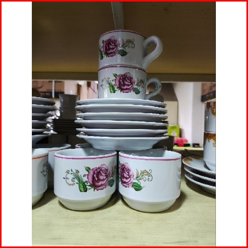 Cangkir Lepek Set Rose Isi 6 Set Bubble Wrap