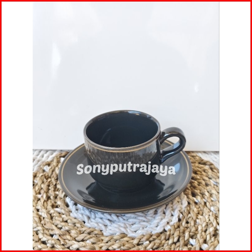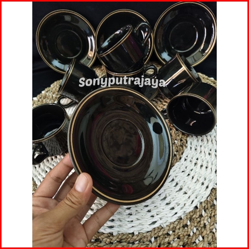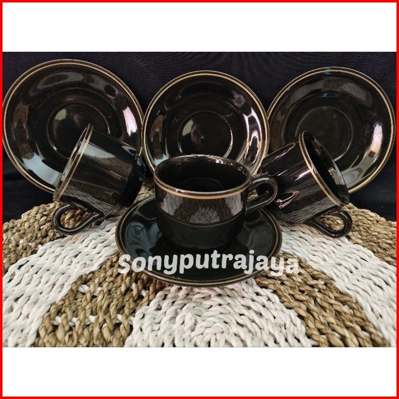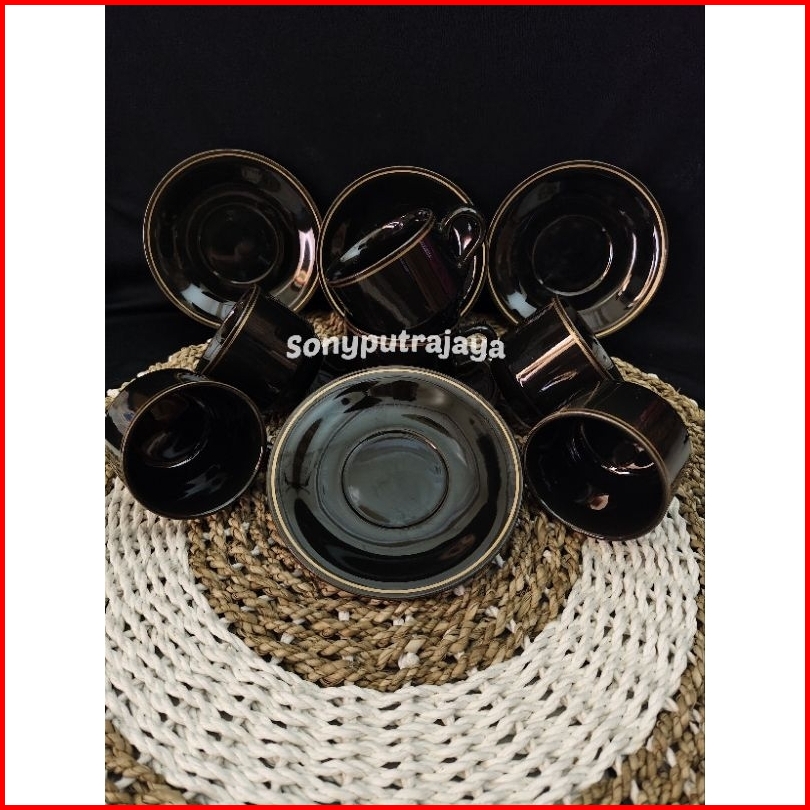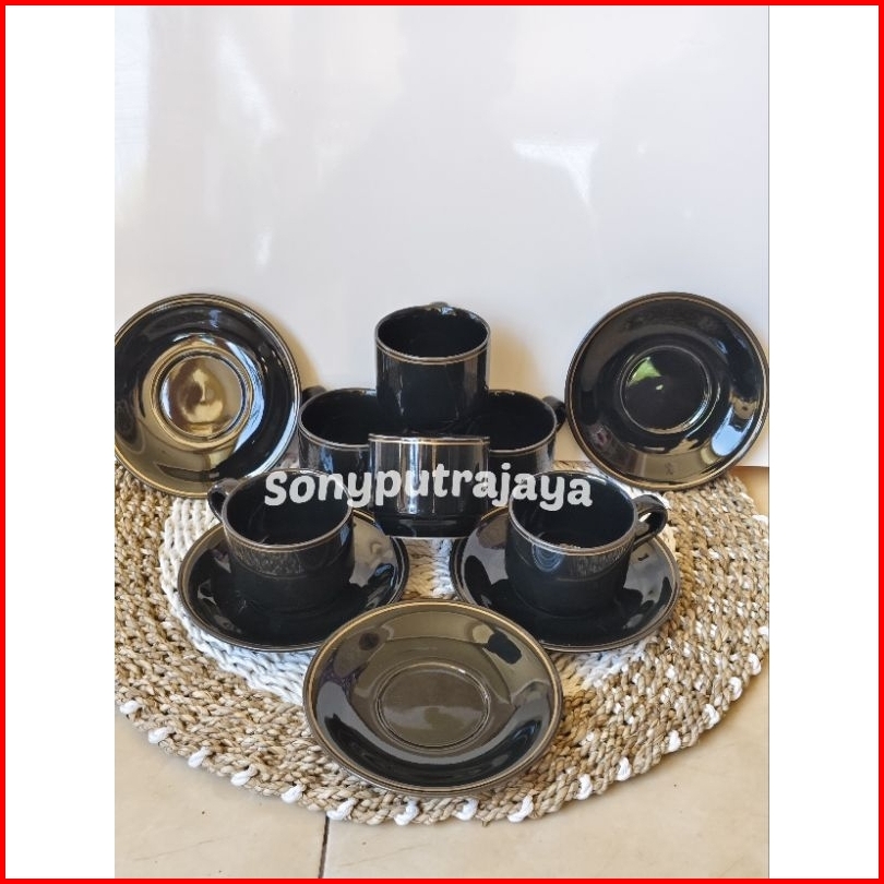 Cangkir Set Black -cangkir Keramik-gelas Kopi Teh-gelas Set Kado Isi 6 Cangkir 6 Tatakan