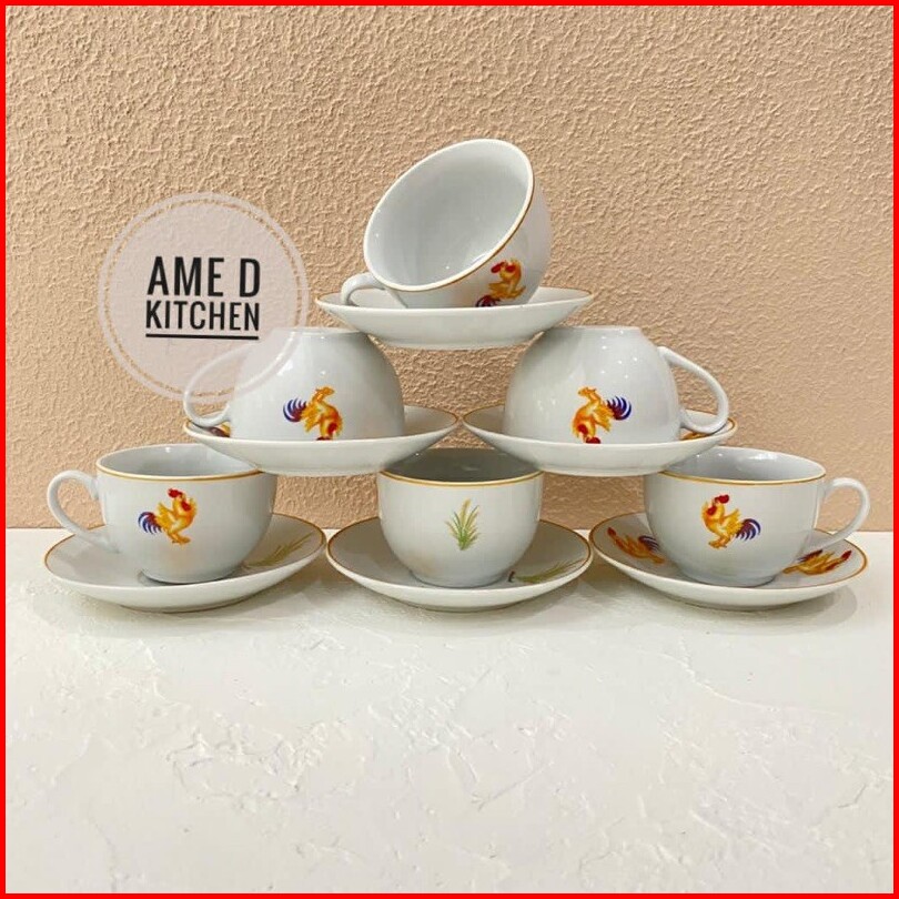 Cangkir Lepek Keramik Bulat Ayam Padi Isi 12 Pcs Winston