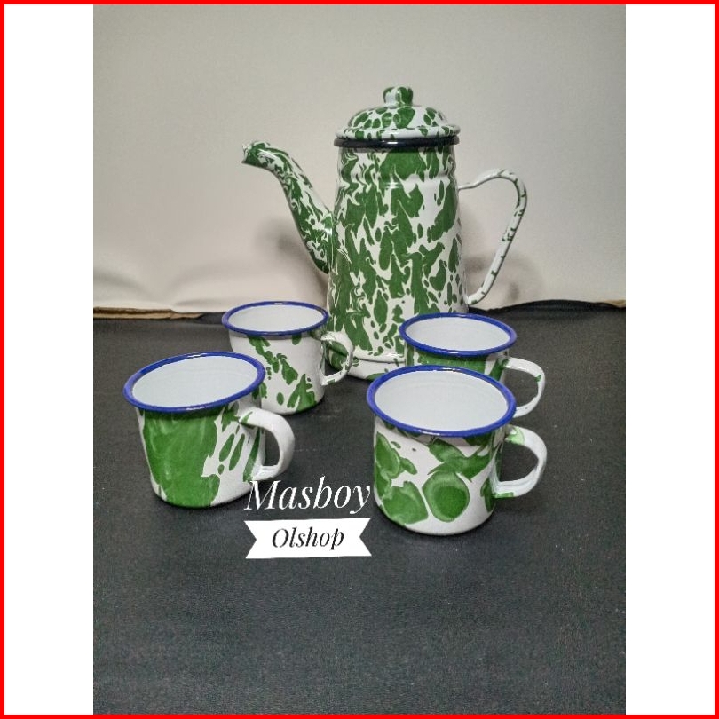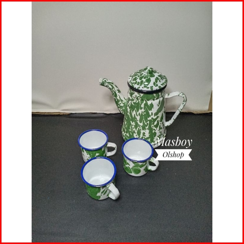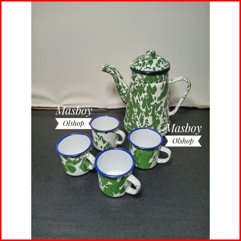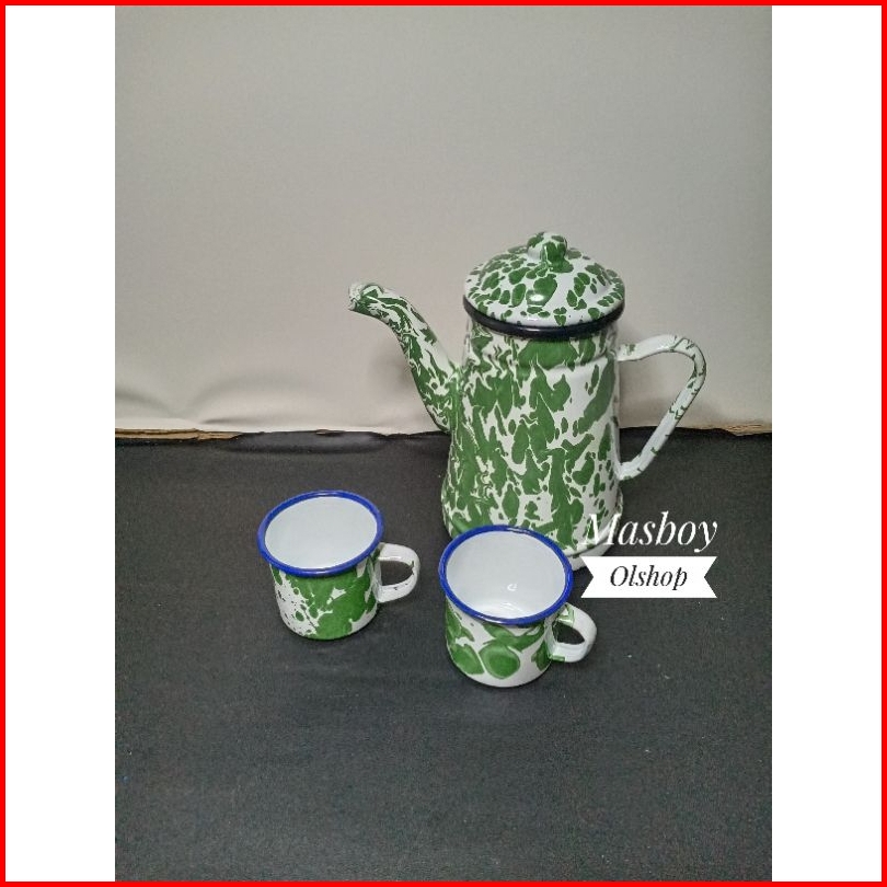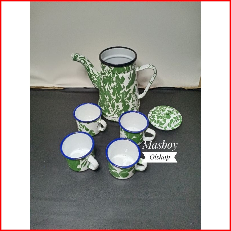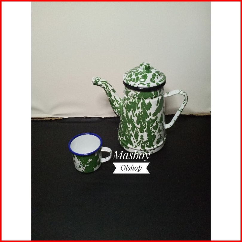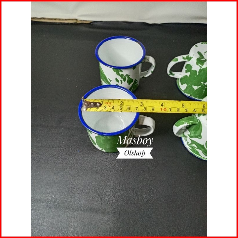 1 Set Teko Enamel Eskan Burik Blirik Mug 7 Cm Barang Jadul Antik