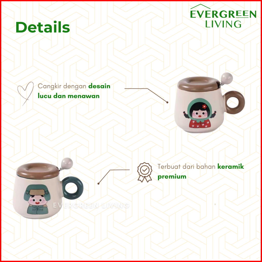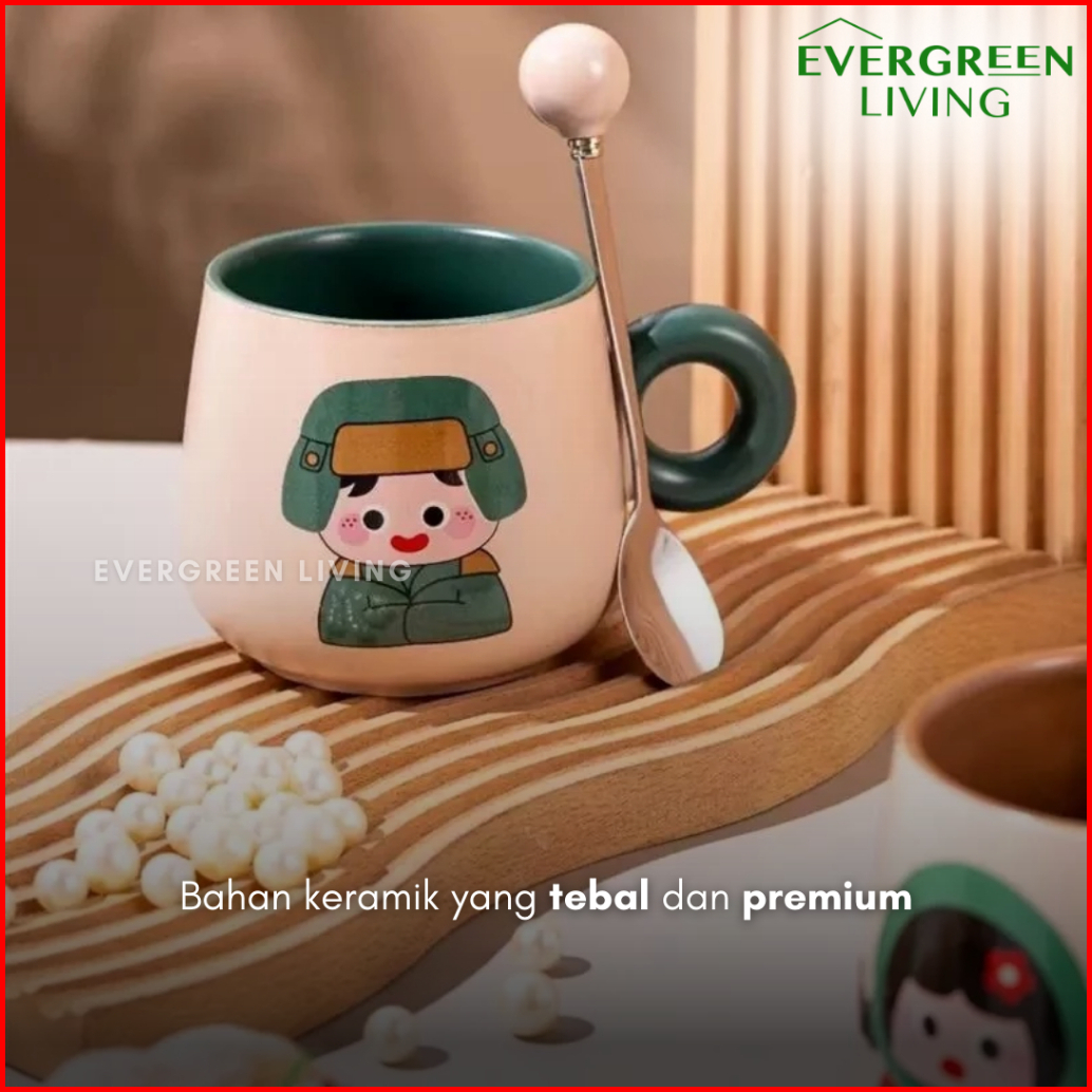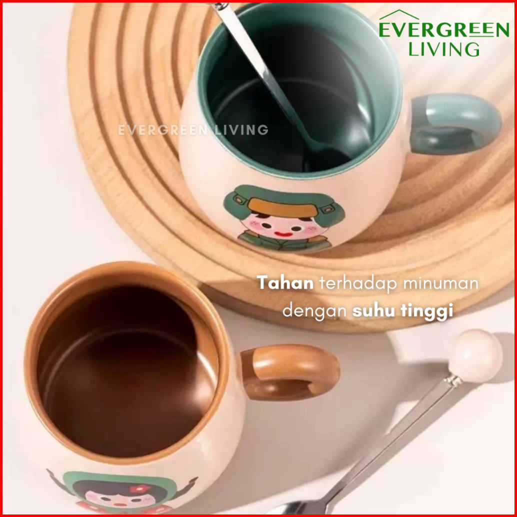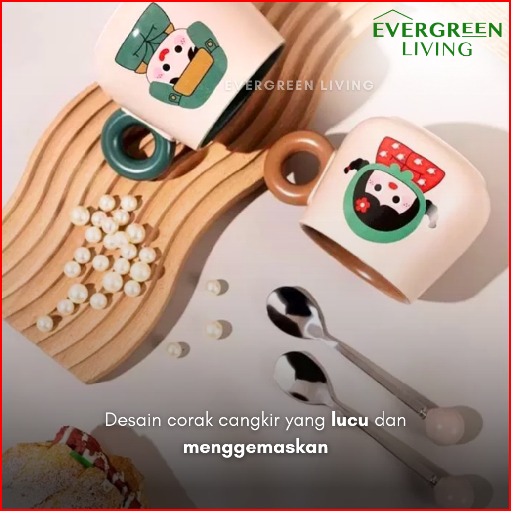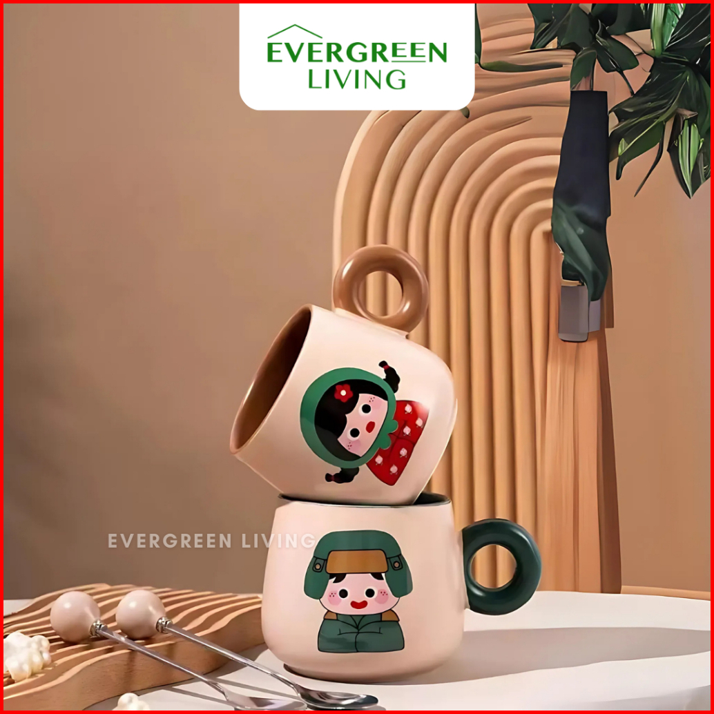 Evergreen Gelas Cangkir Mug Pasangan Mongolia Lucu Unik Elegant Aestetik Tahan Panas Bahan Keramik Tebal High Quality Cu