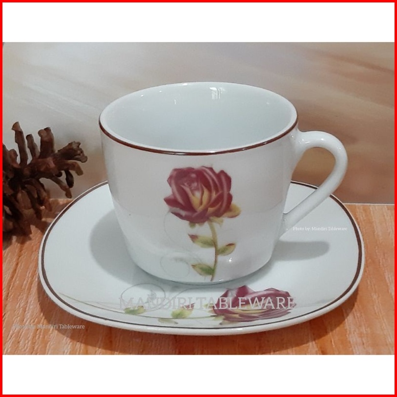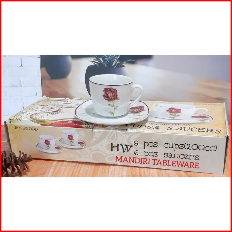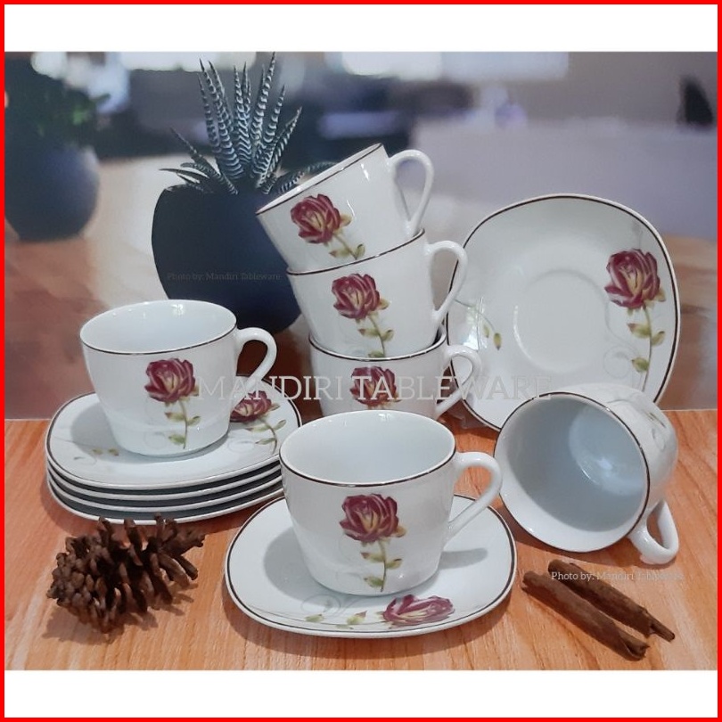 Best Seller 6 Psg Cangkir Set Keramik Segi Motif Rosewood Cangkir Kopi Cangkir Teh