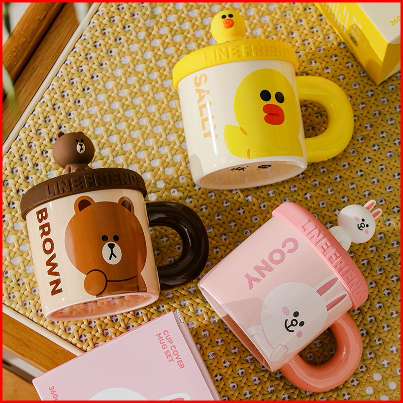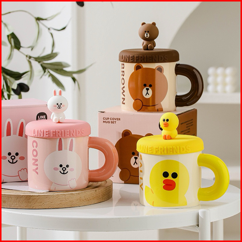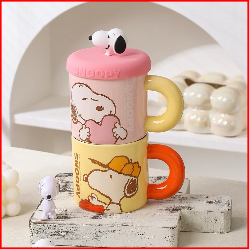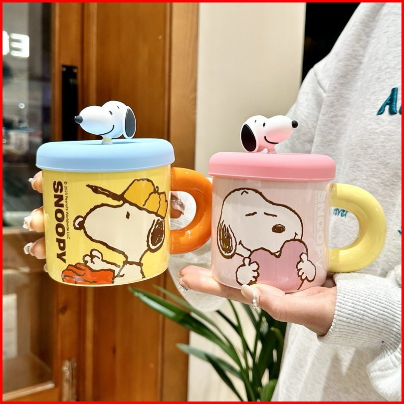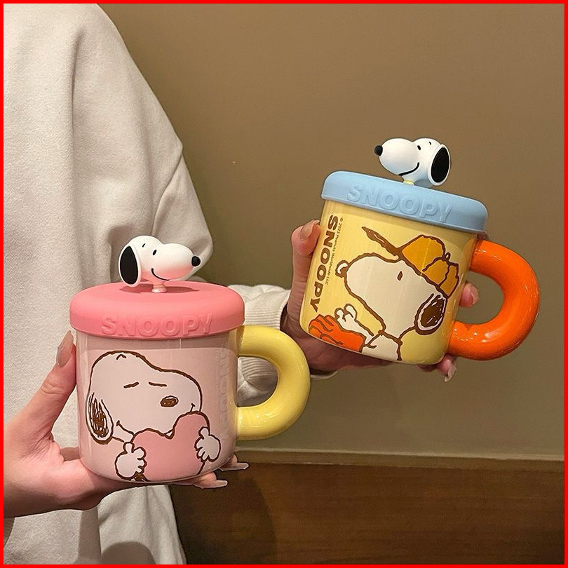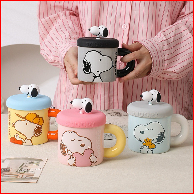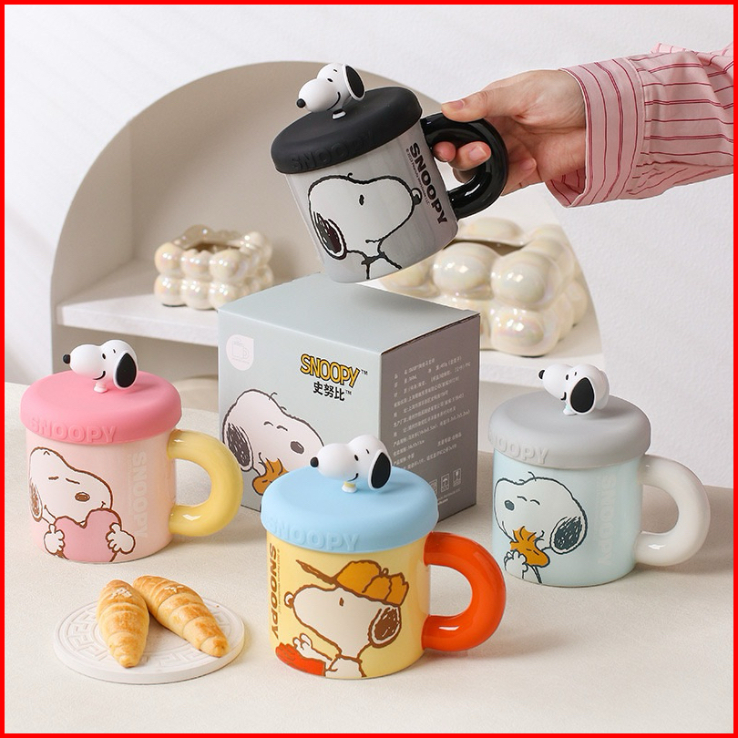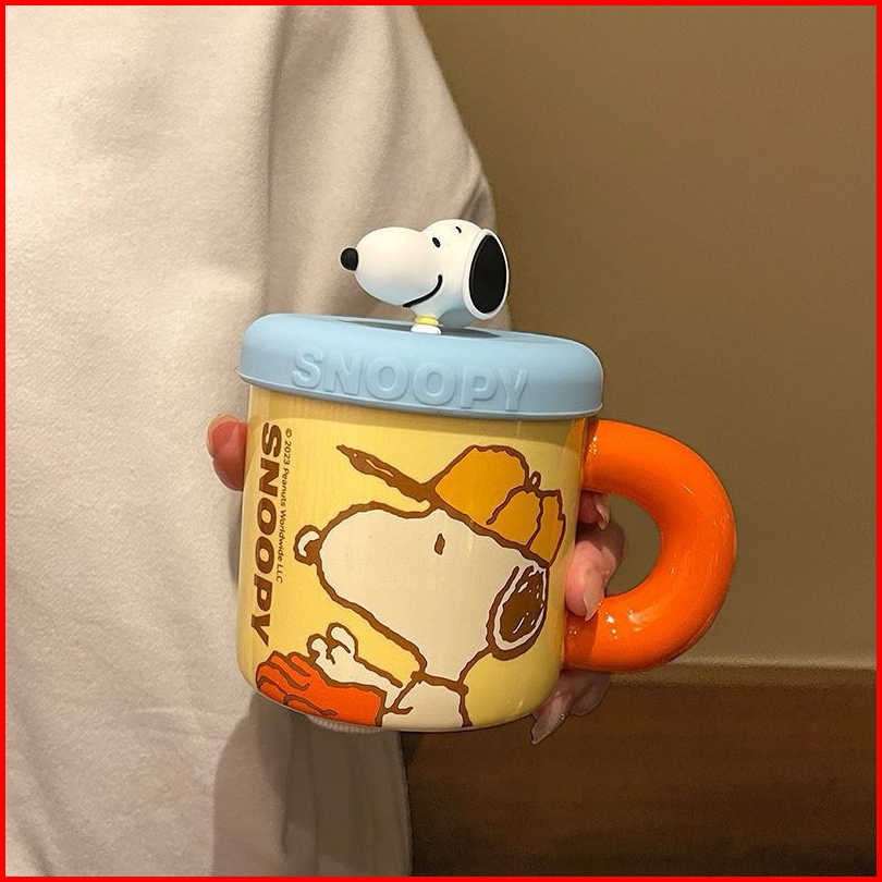 Mug Keramik Snoopy Line Handle Tebal Tutup 360ml Gelas Keramik Import Line Snoopy