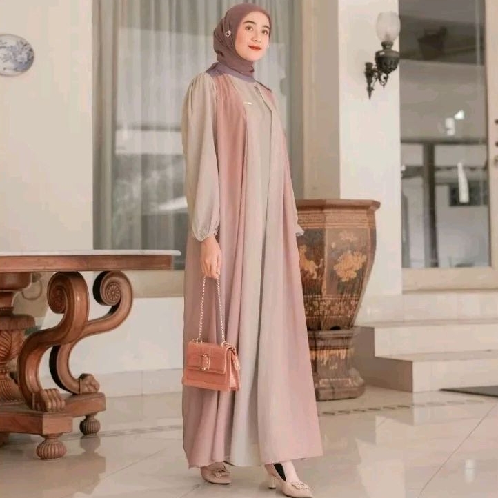 ( RAMADHAN SALE ) Ventedaily - Alyssa Maxy Dress Gradasi Premium Gamis Abaya 2 Warna Ceruty Pesta Mewah