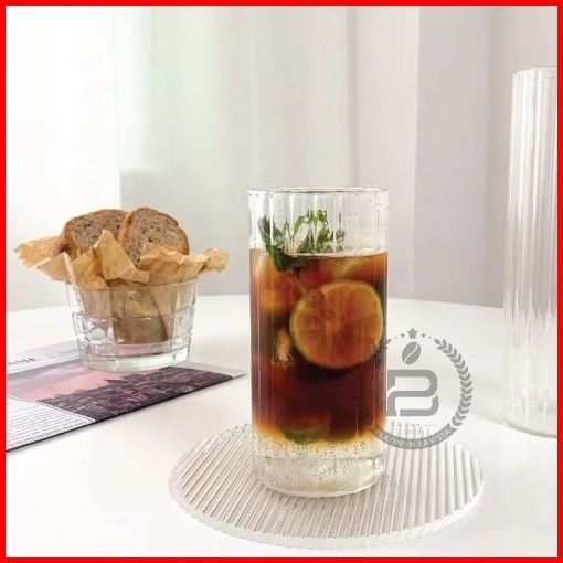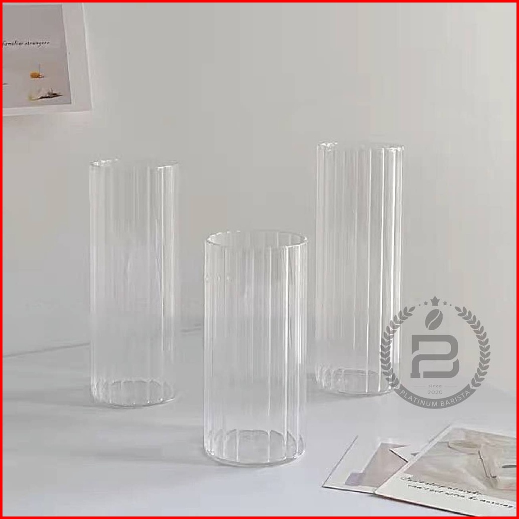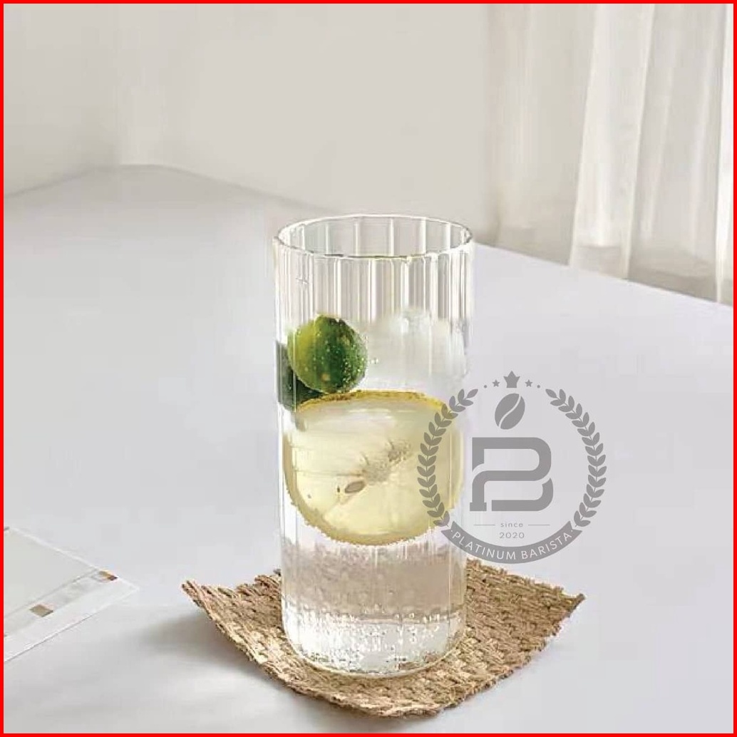 Vertical Stripe Glass Borosilicate Gelas Kaca Ripple Tinggi Simple Polos Cangkirjuice Jus Air Minum Glass Cantik Unik Ko