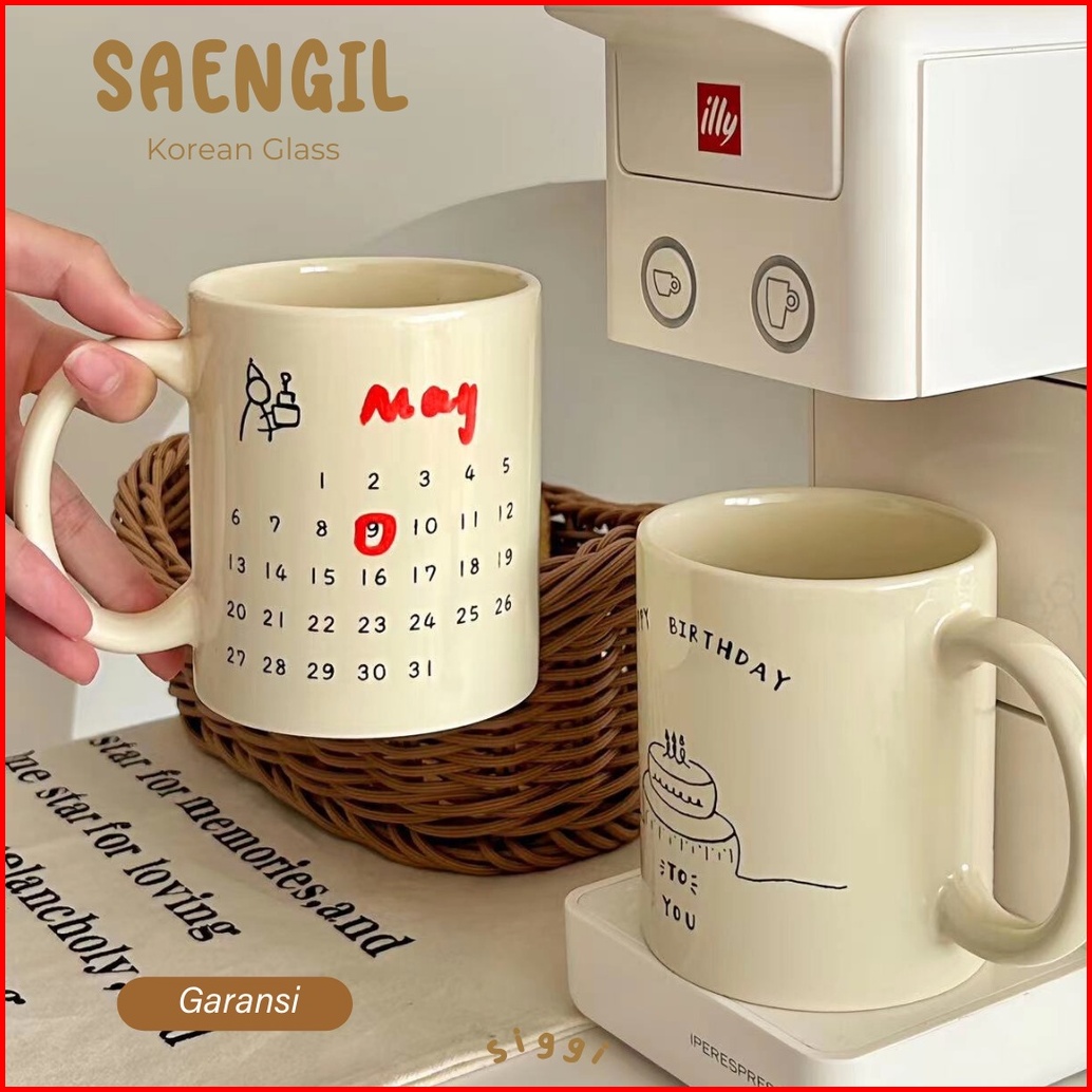 Siggi Saengil Aesthetic Korean Glass Mug Birthday Gift Gelas Estetik Keramik